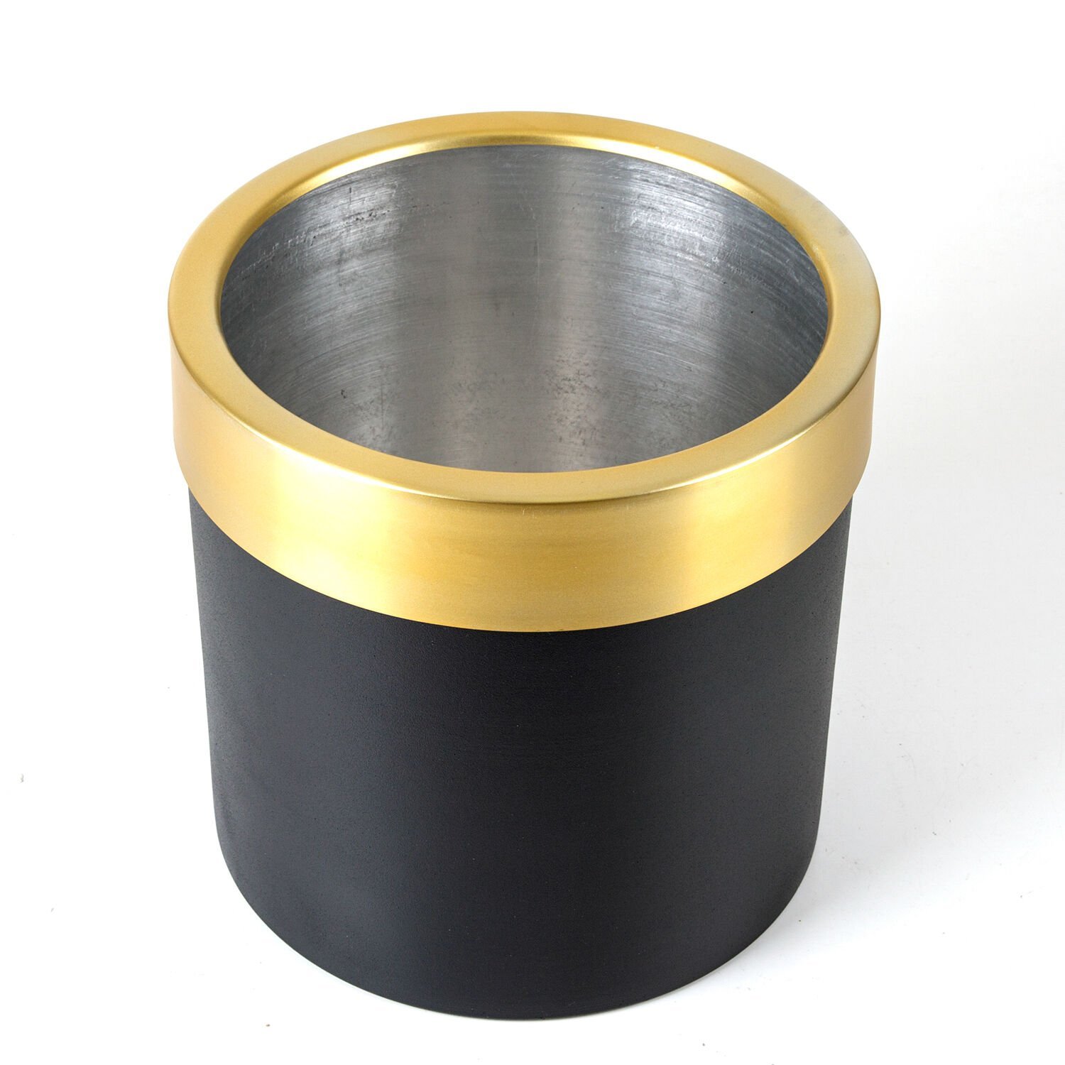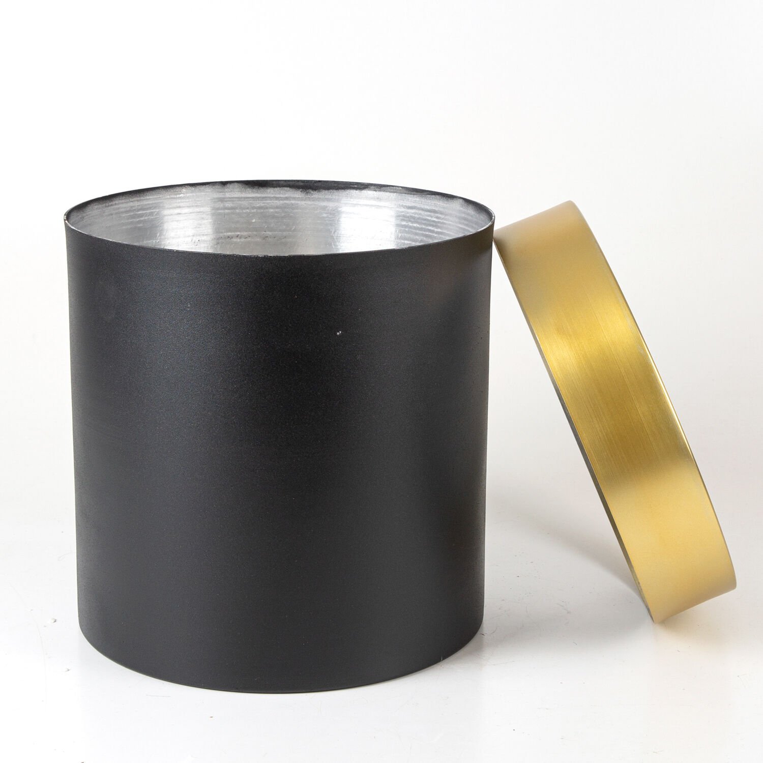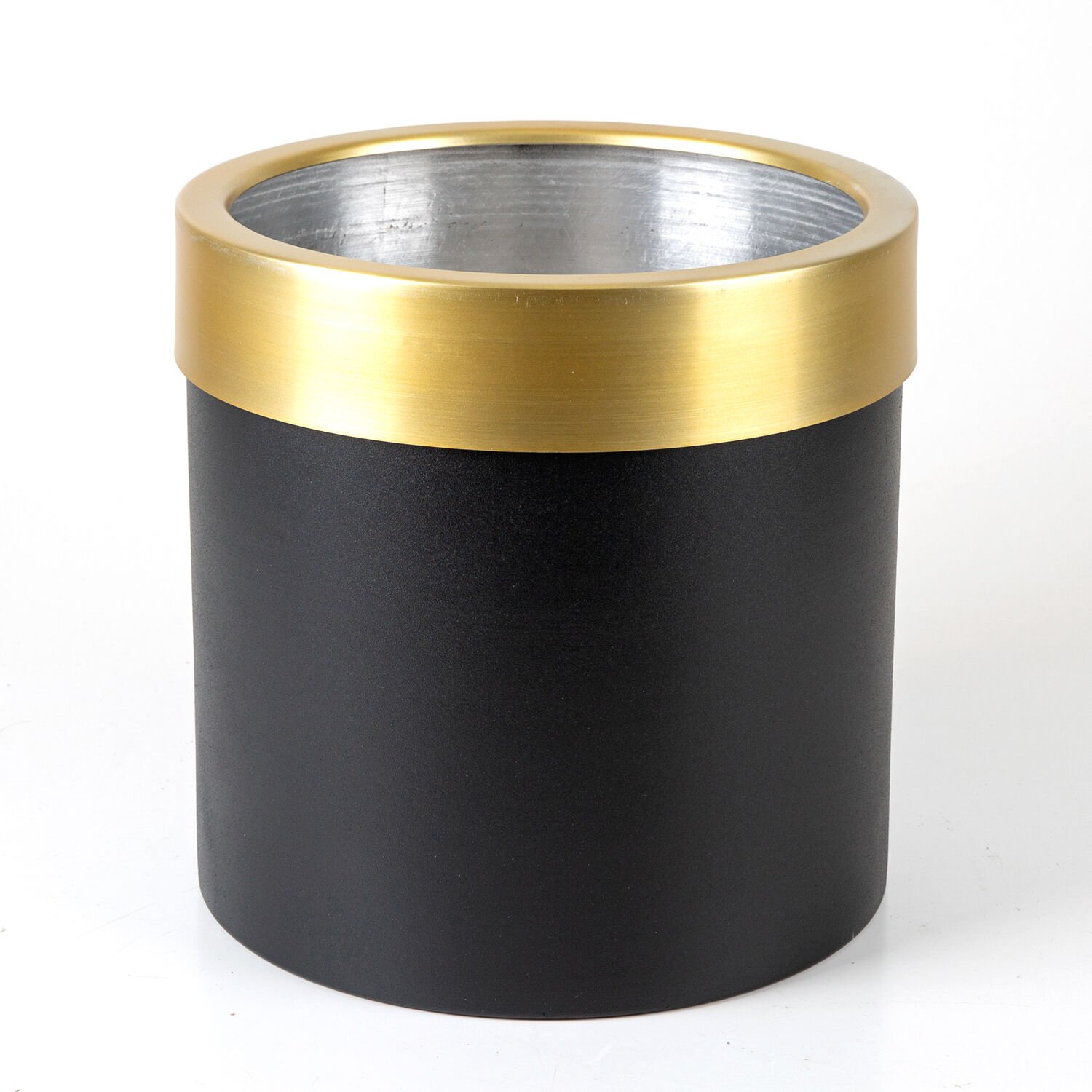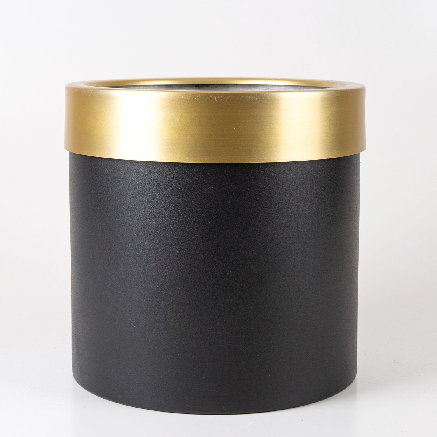 Alüminyum Saksı, Silindir, Çemberli, Siyah-Gold - 25x25 cm