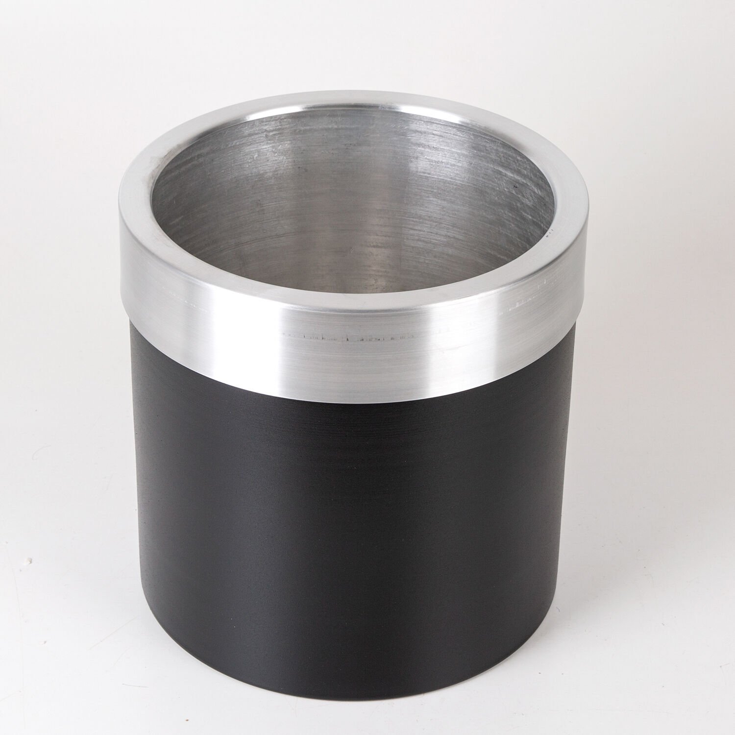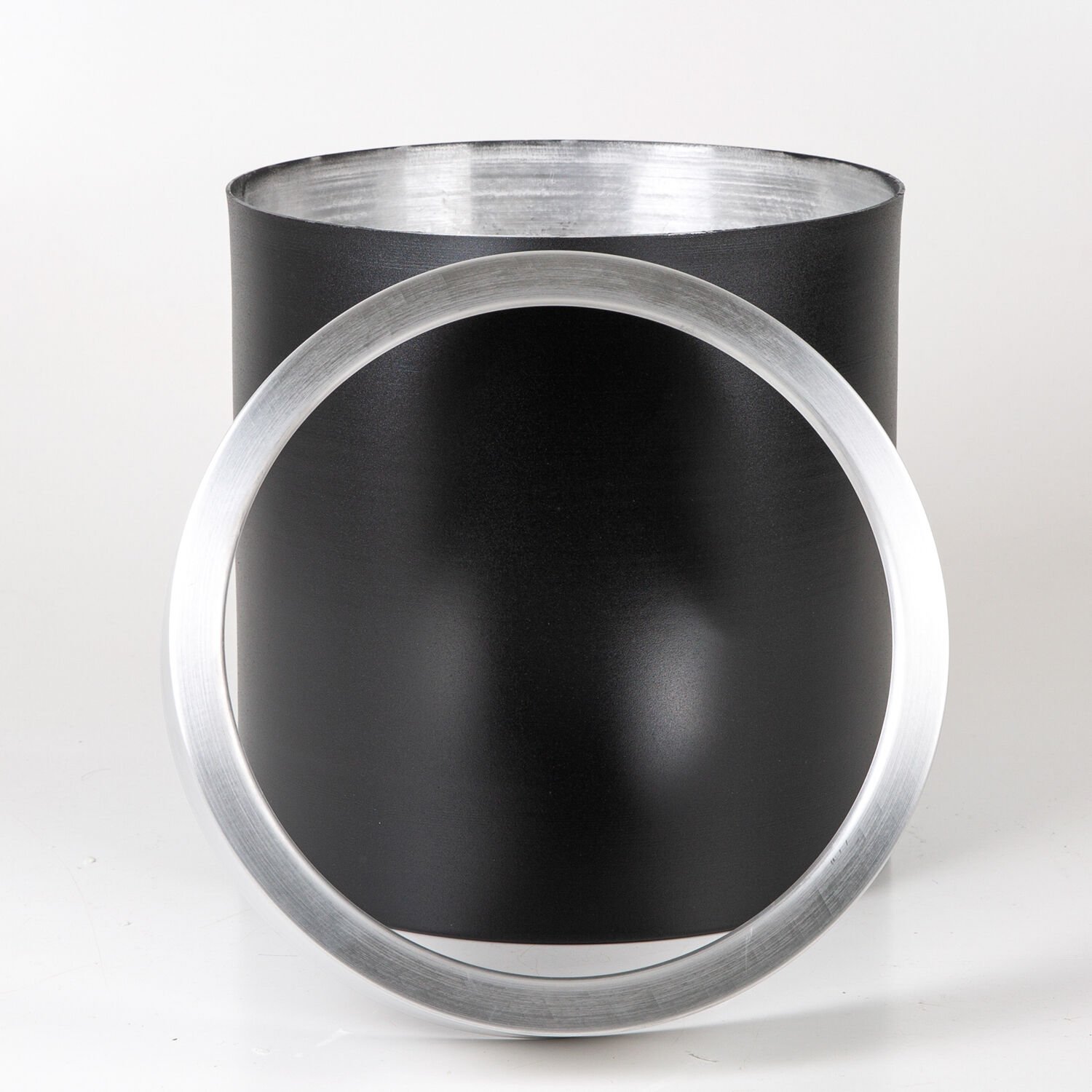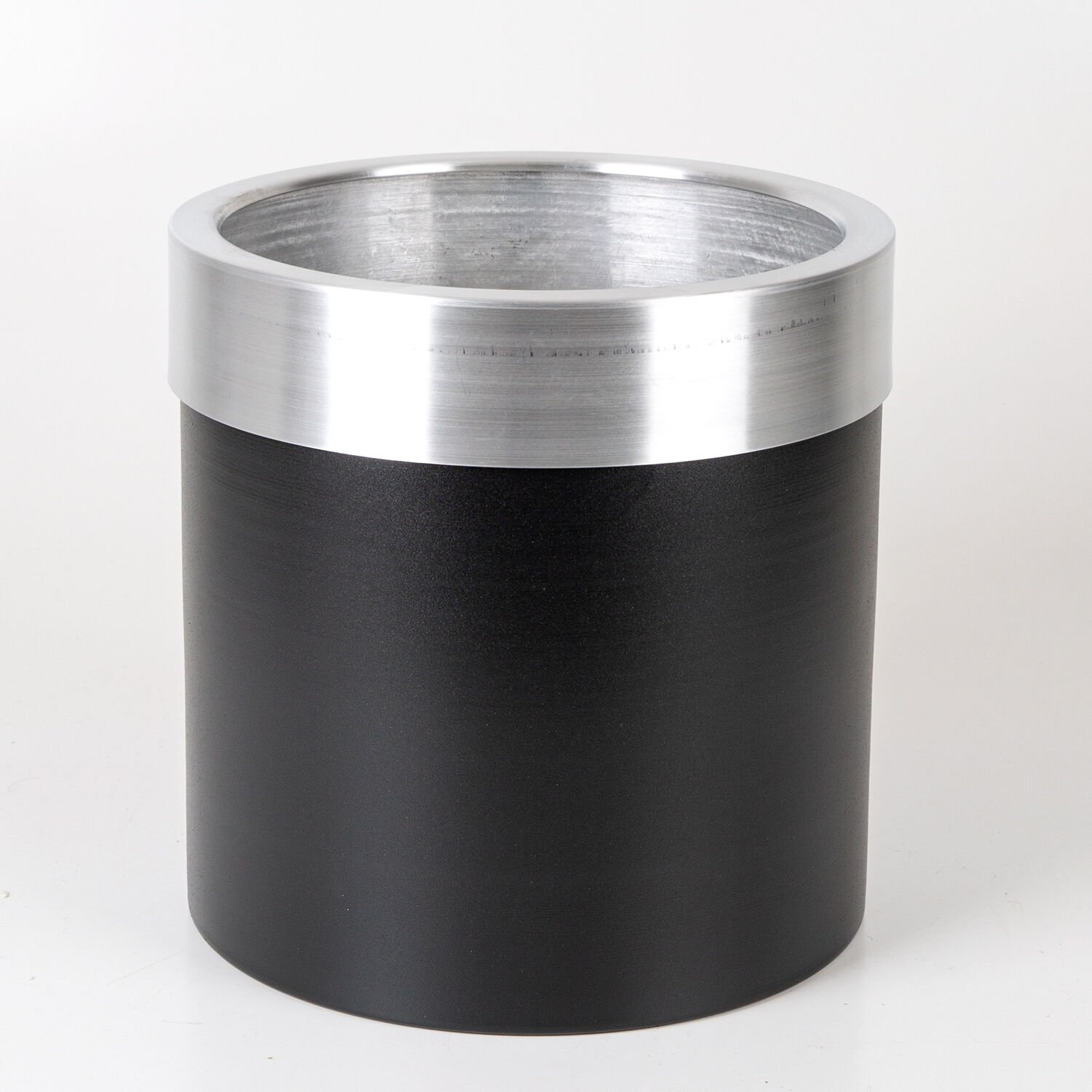 Silindir Alüminyum Saksı Çemberli Siyah-Gümüş 25X25 Cm.