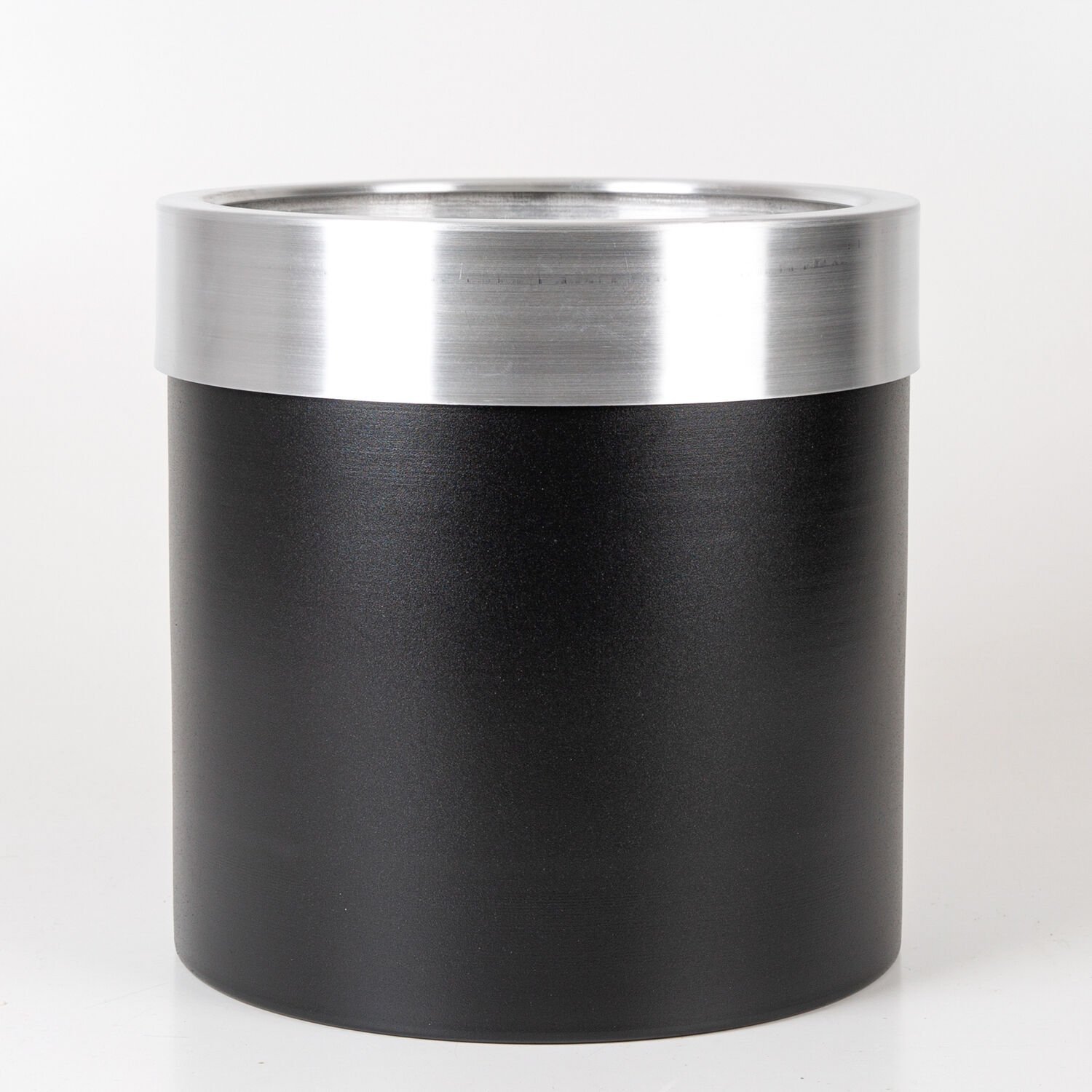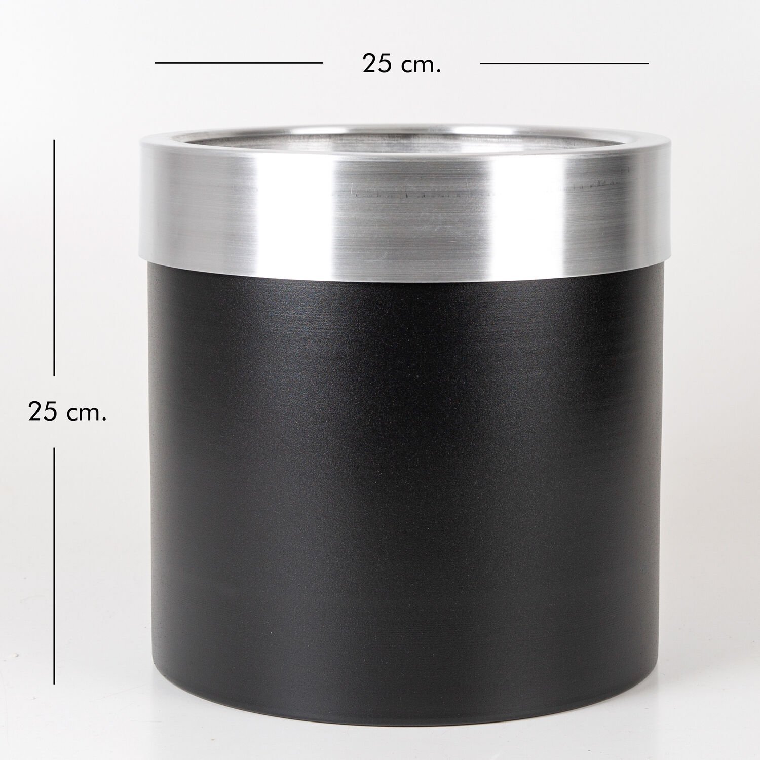Alüminyum Saksı, Silindir, Çemberli, Siyah-Gümüş - 25x25 cm