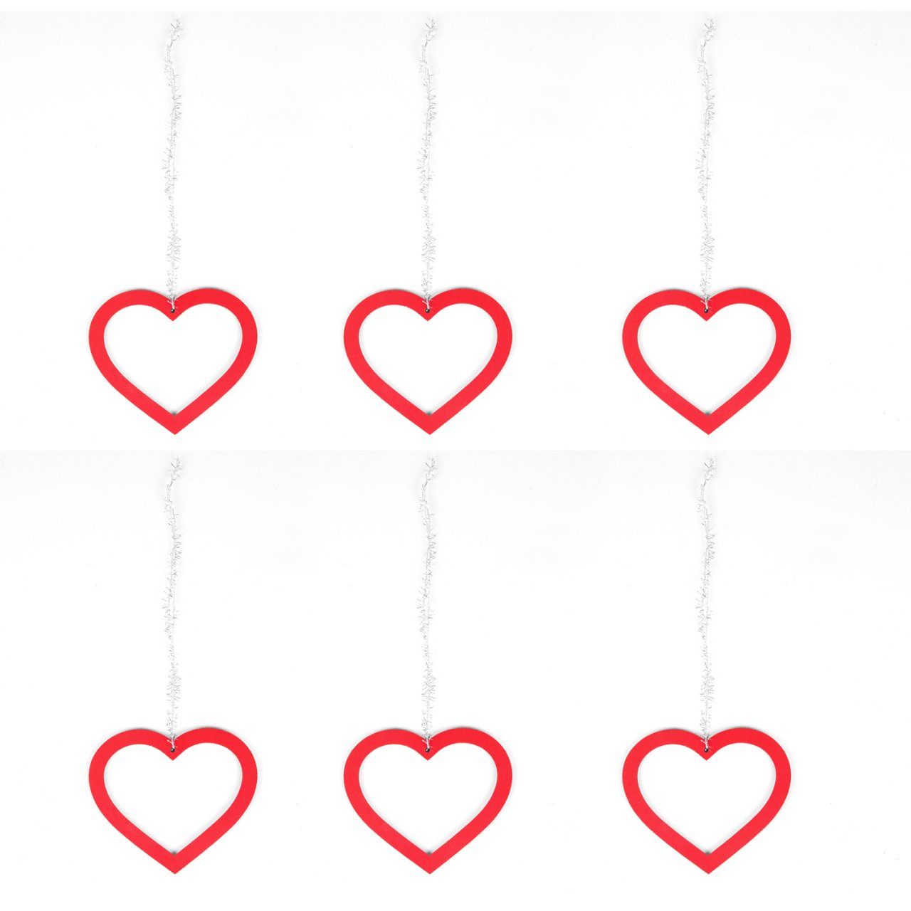 - Paket İçeriği: 6 Adet Ortası Boş, Kırmızı Askılı Ahşap Kalp Süs