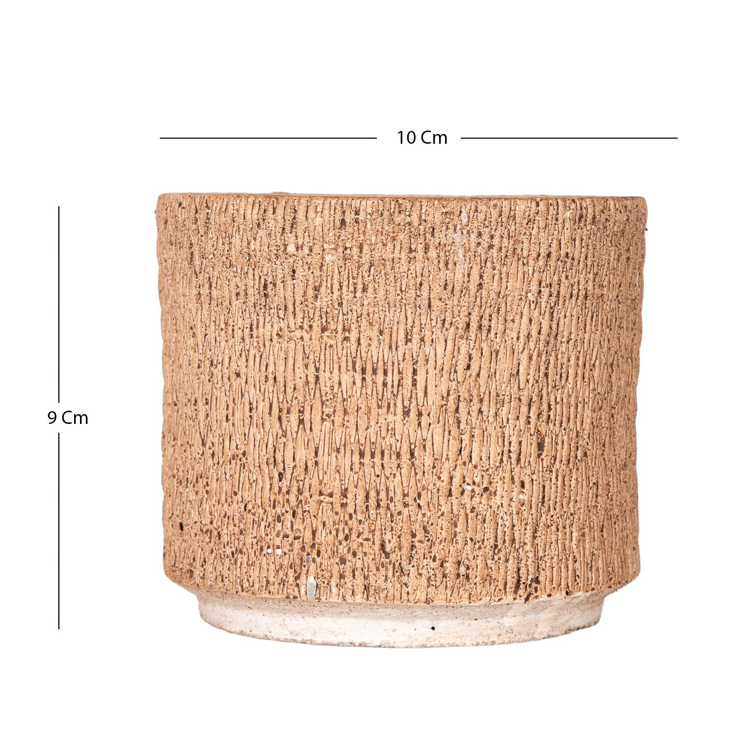 Beton Saksı, Hasır Desenli, Kahverengi - 10x9 cm