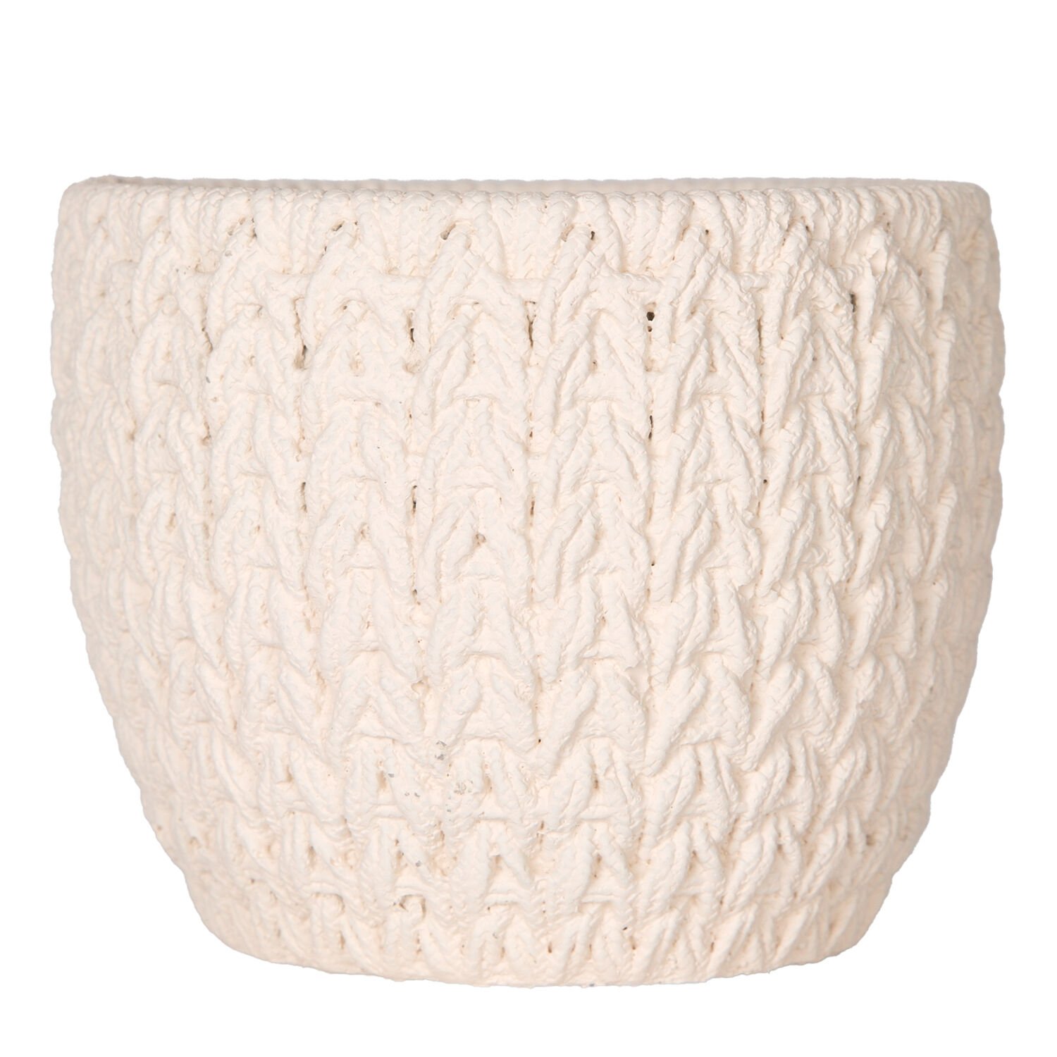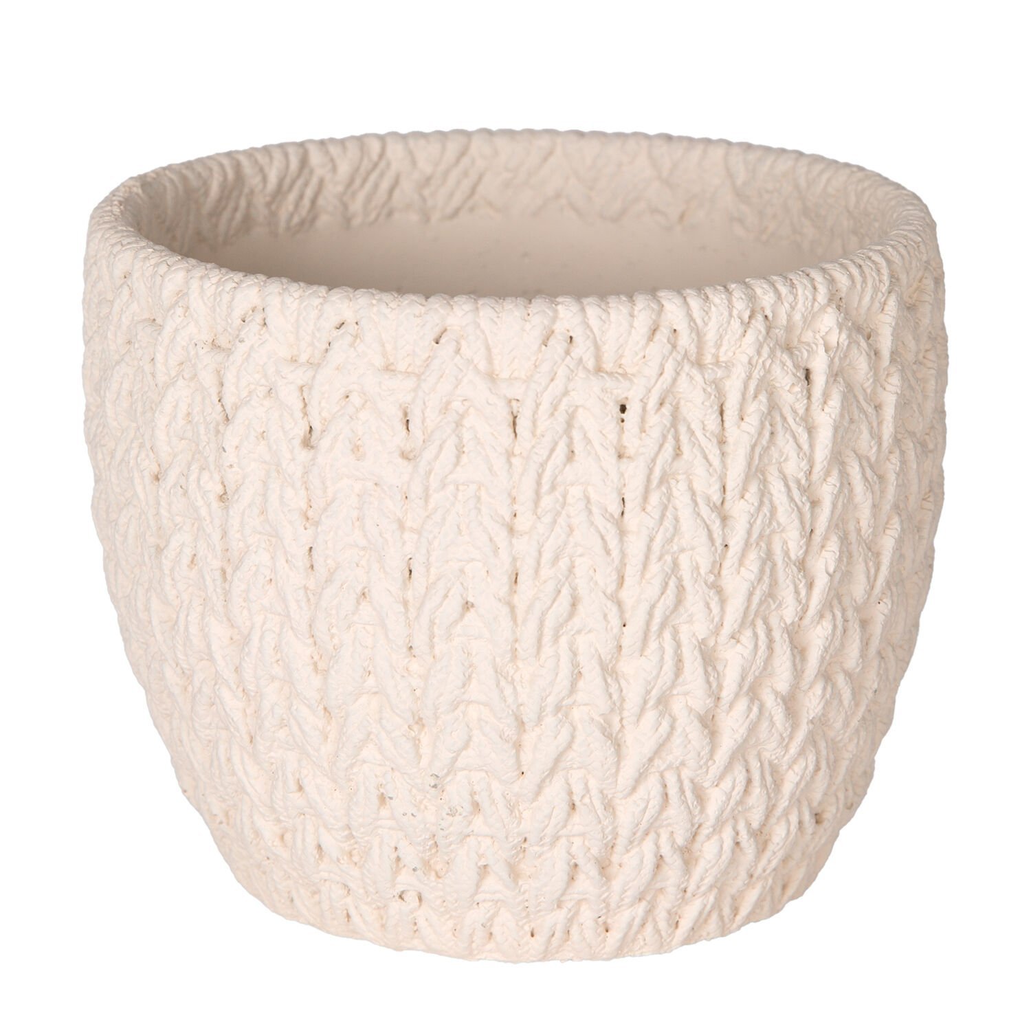 Beton Saksı, Örgü Desenli, Beyaz - 12x10,5 cm