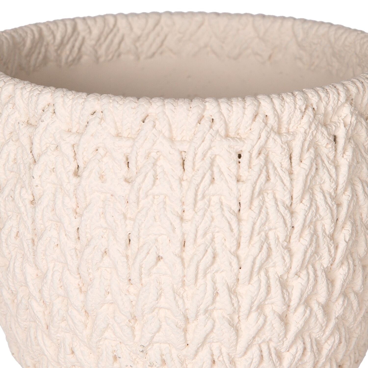 Beton Saksı, Örgü Desenli, Beyaz - 14x13 cm