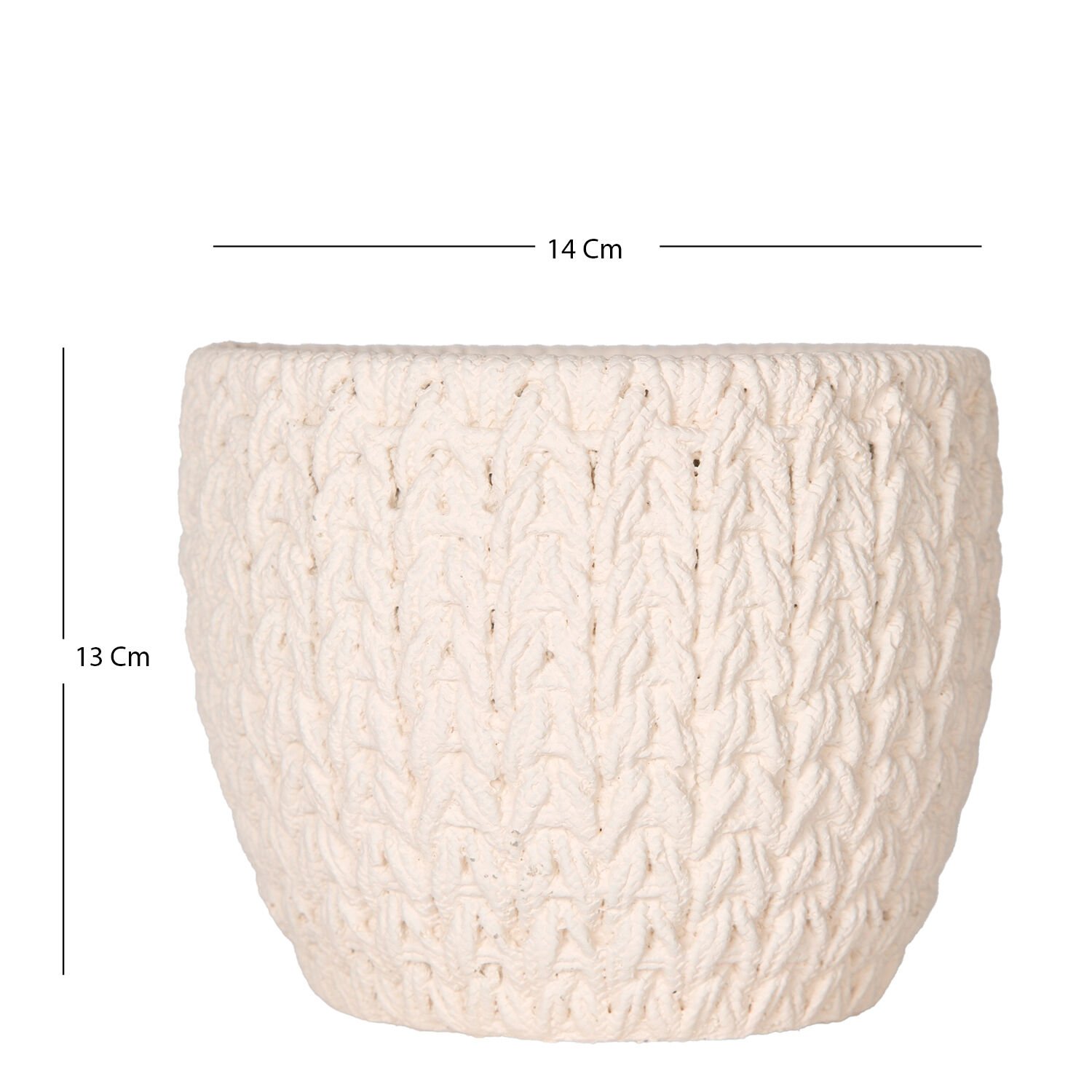 Beton Saksı Örgü Desenli Beyaz 14x13 Cm.