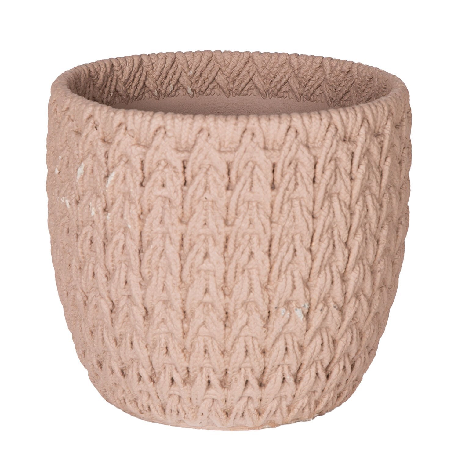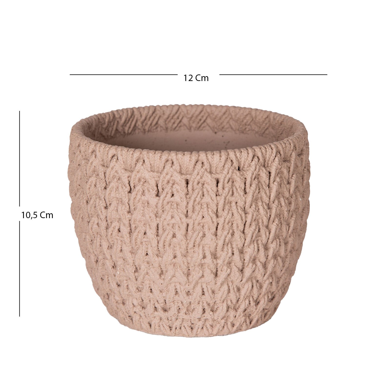 Beton Saksı, Örgü Desenli, Kahverengi - 12x10,5 cm