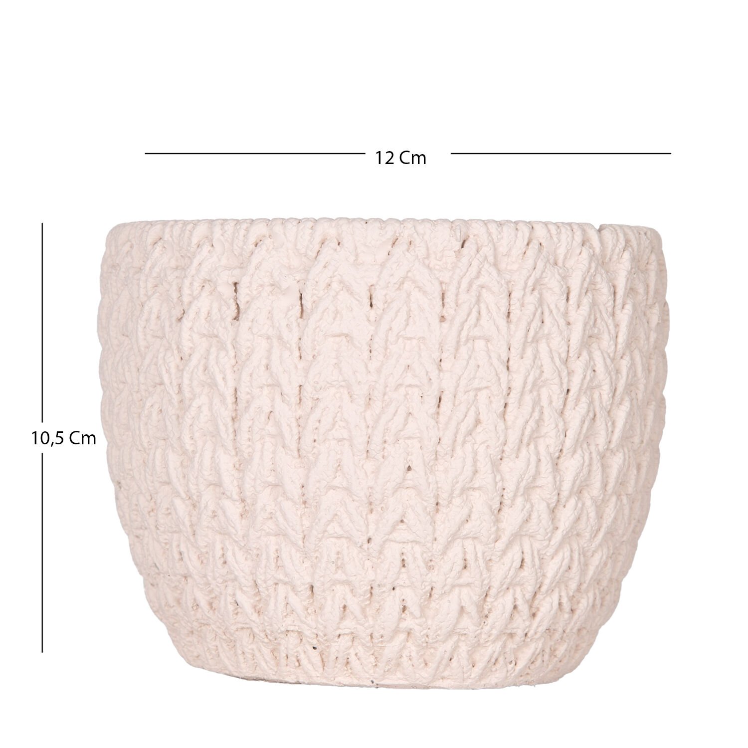 Beton Saksı Örgü Desenli Krem 12x10,5 Cm.