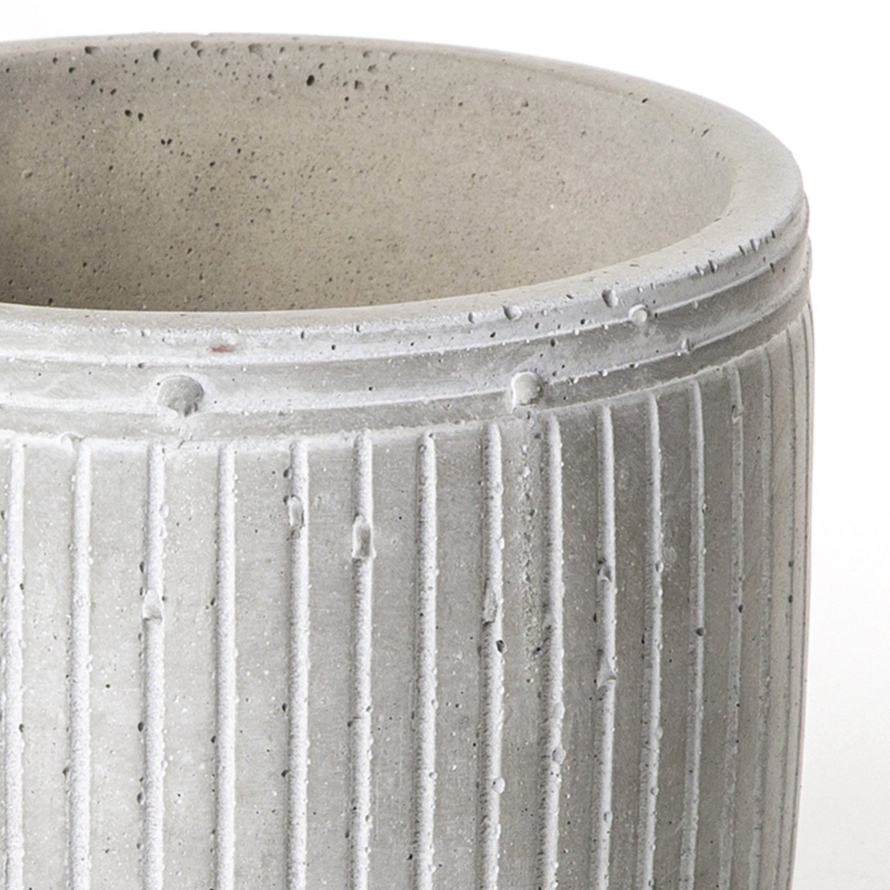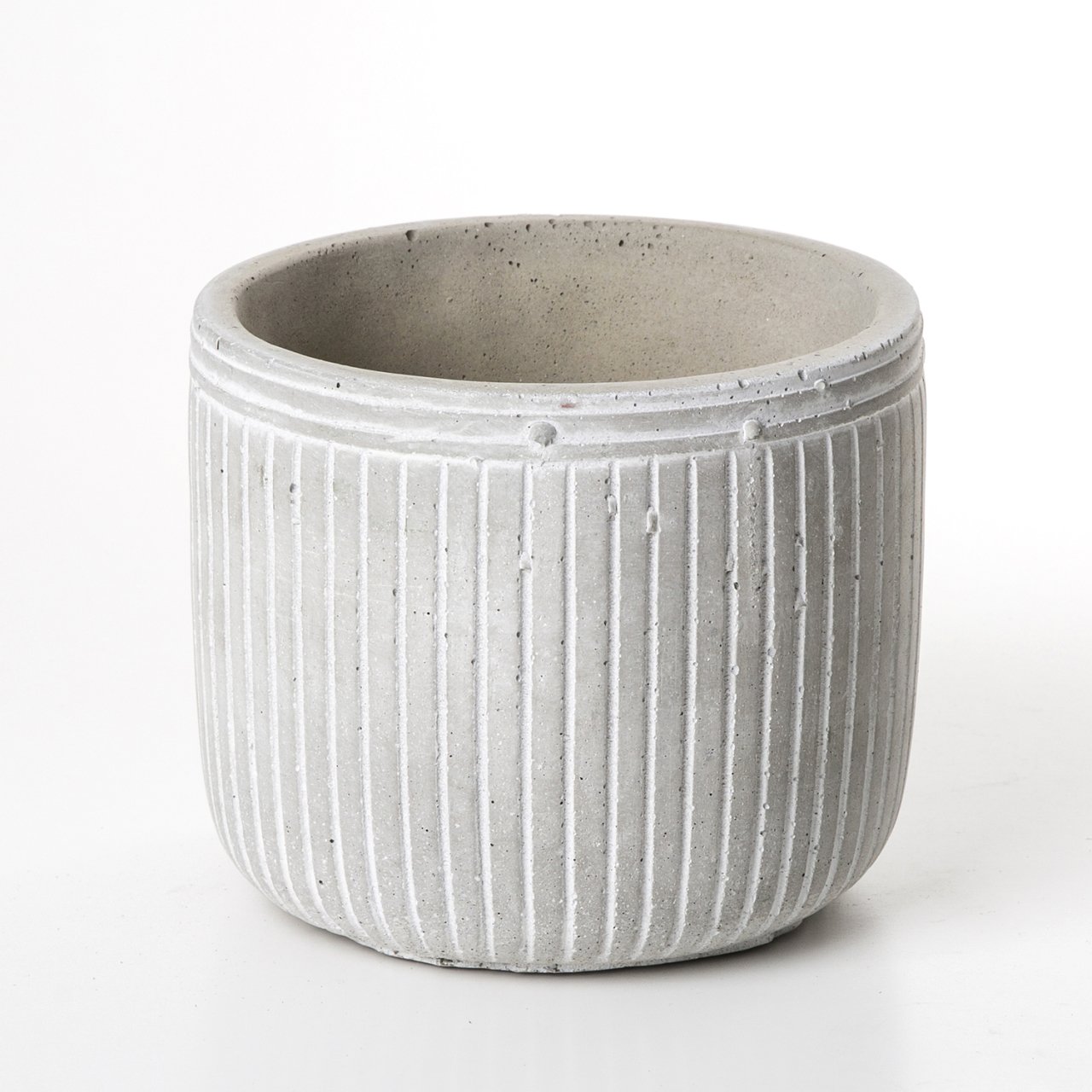 Beyaz Çizgili Beton Gri Saksı 14x12 Cm