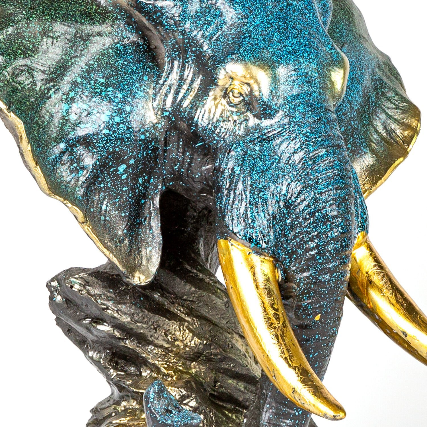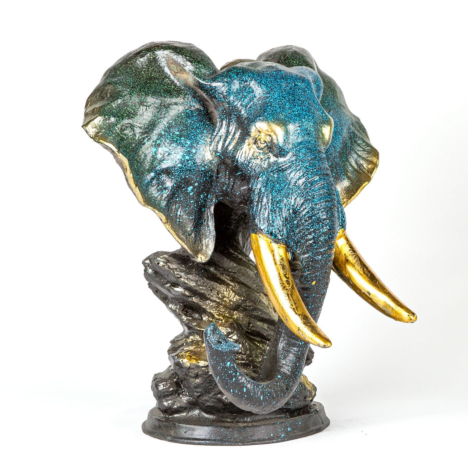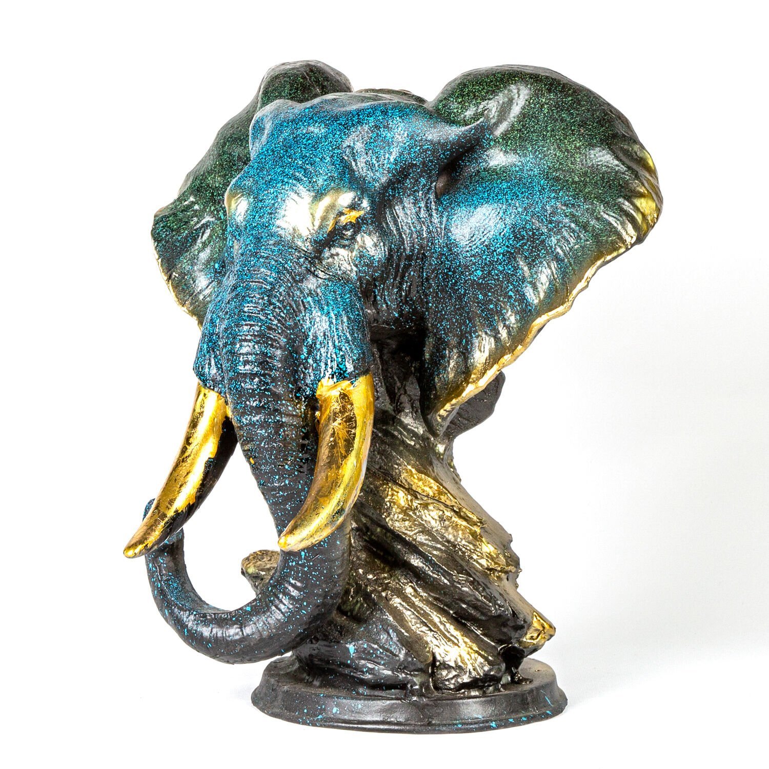 Biblo, Büyük Dişli Afrika Fil Büst, Mavi - 40x46x34 cm