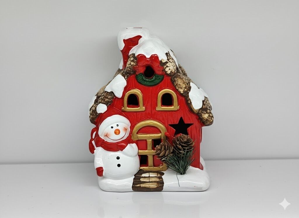 Biblo, Ev ve Kardan Adam, Kırmızı - Işıklı, Seramik