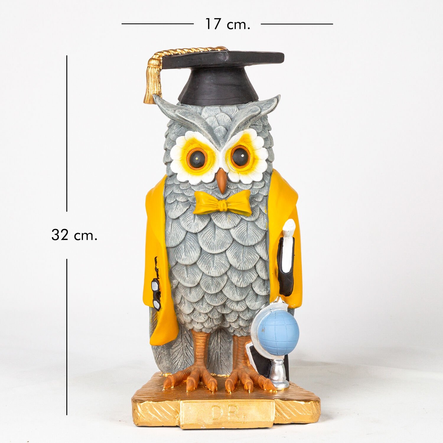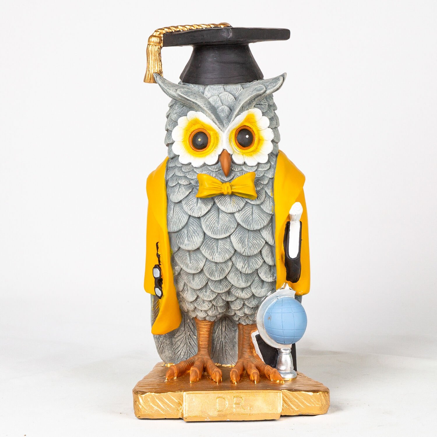 Biblo, Mezun Baykuş, Sarı Ceketli, Gri - 17x32x14 cm