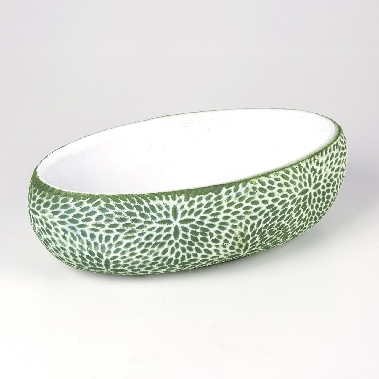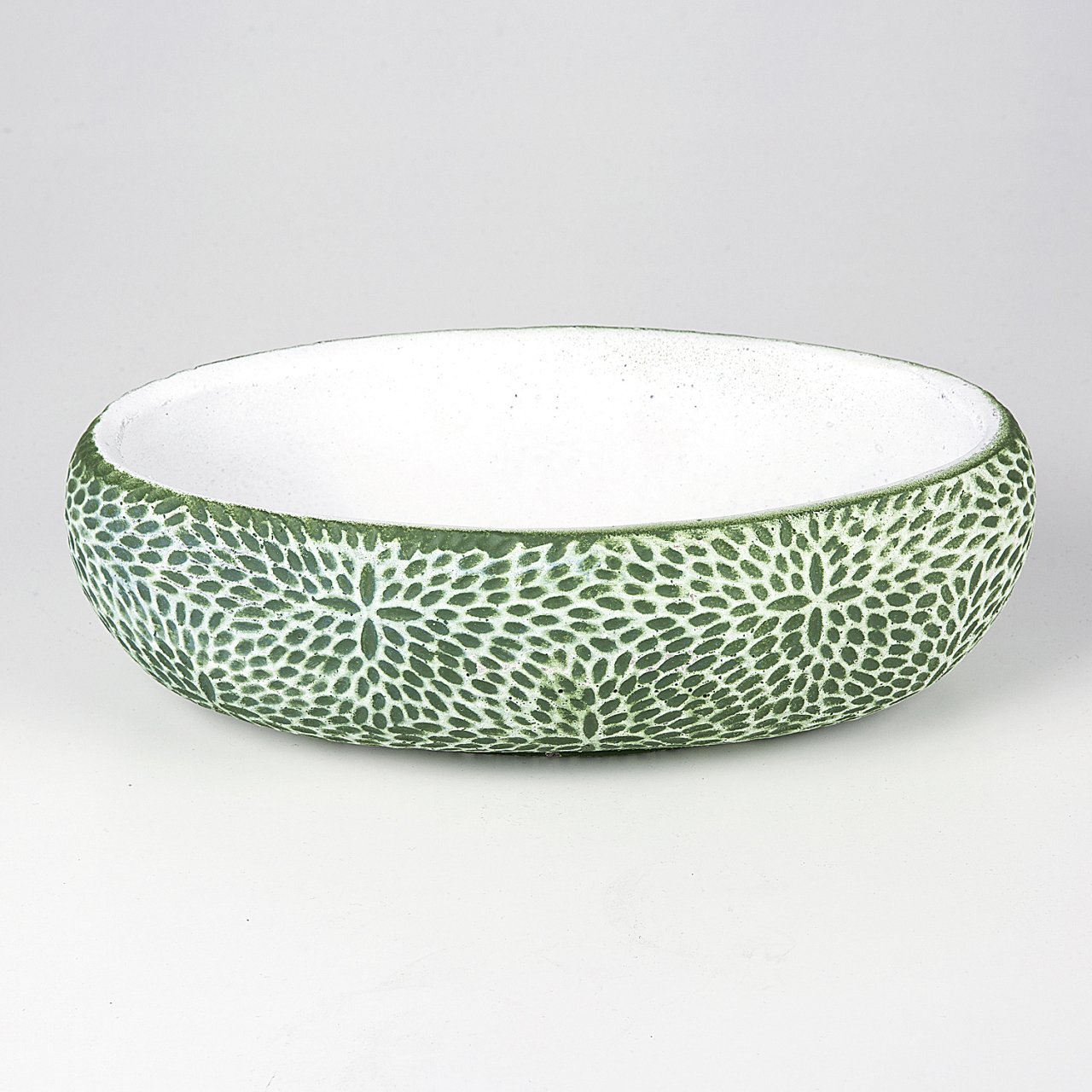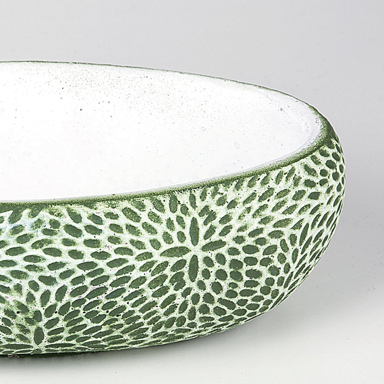Çiçek Motifli Oval Yeşil Beton Saksı 33x10x17 Cm