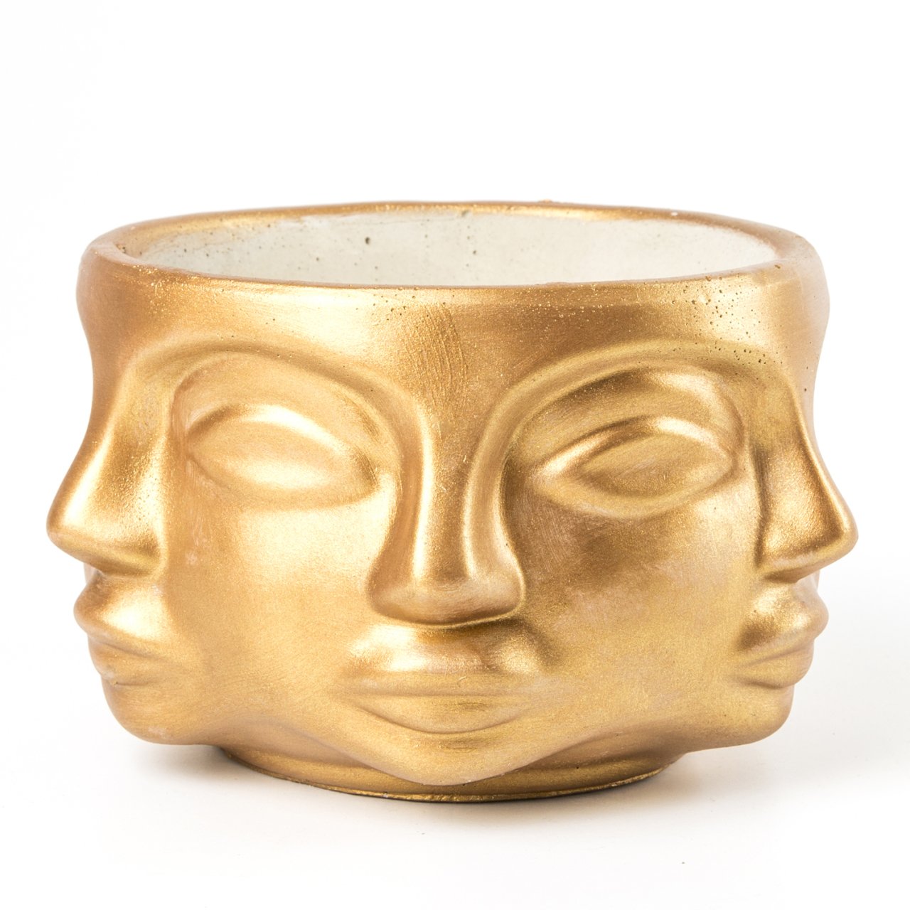 Çok Yüzlü Koyu Altın Sarısı Beton Saksı 1,5 Lt 17x12 Cm