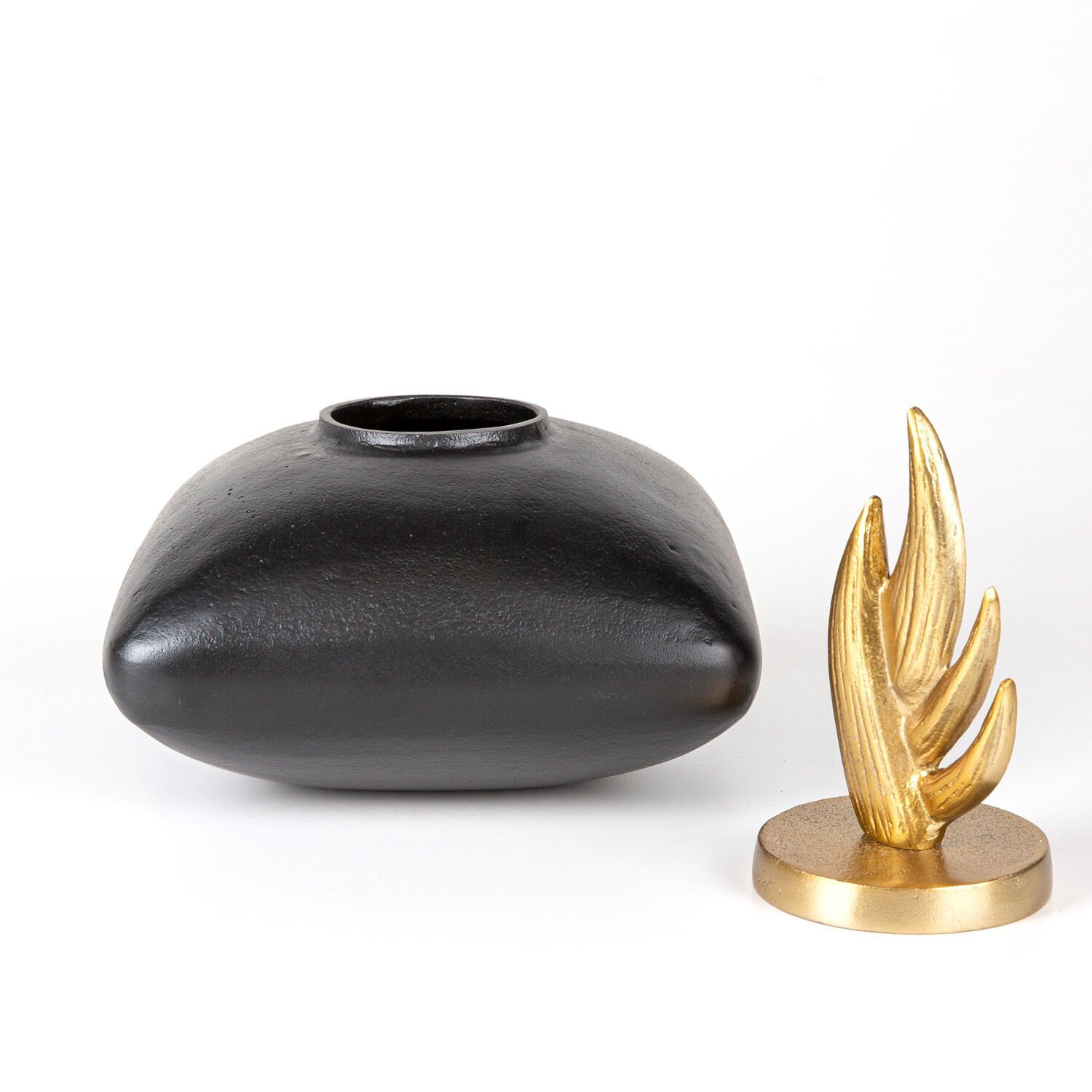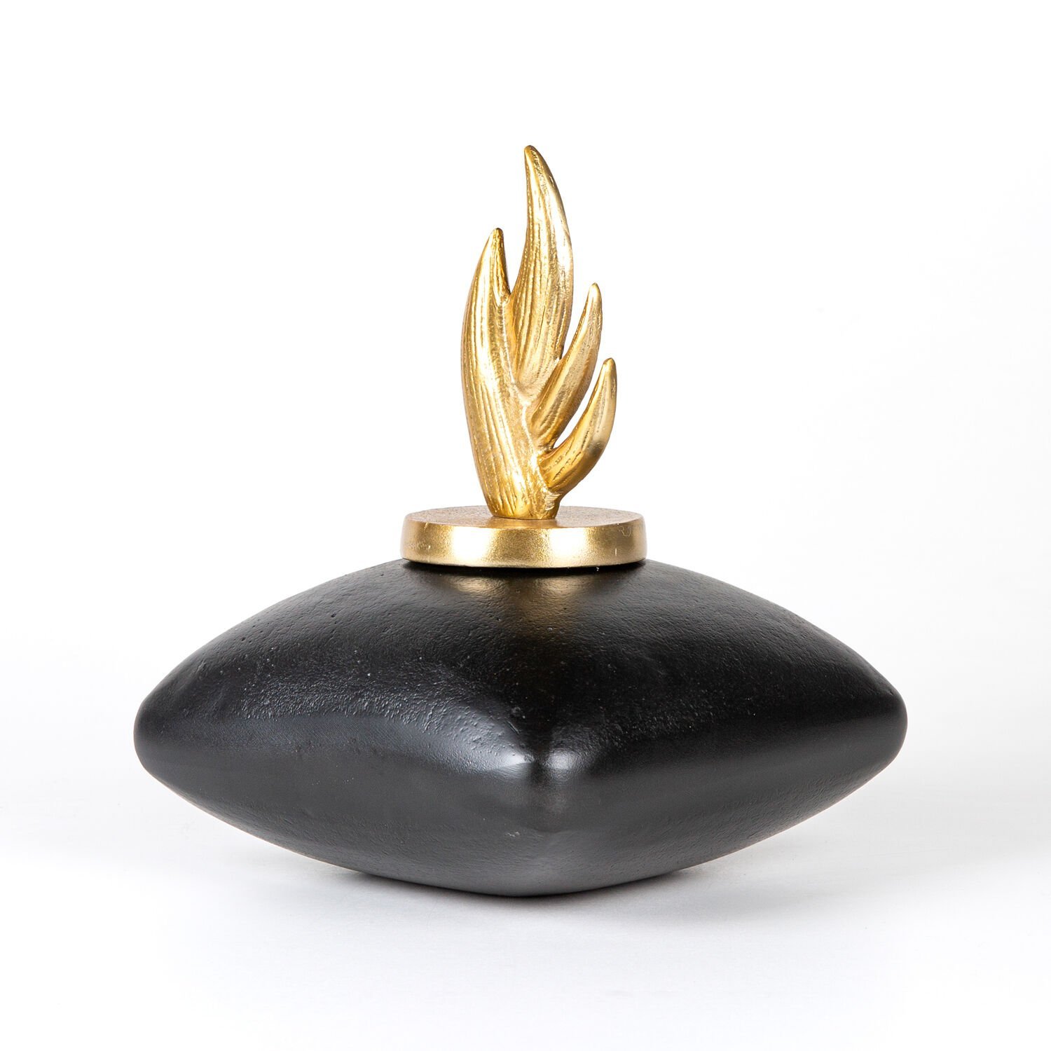 Dekoratif Vazo, Metal, Kapaklı, Siyah-Gold - 21x26x20 cm