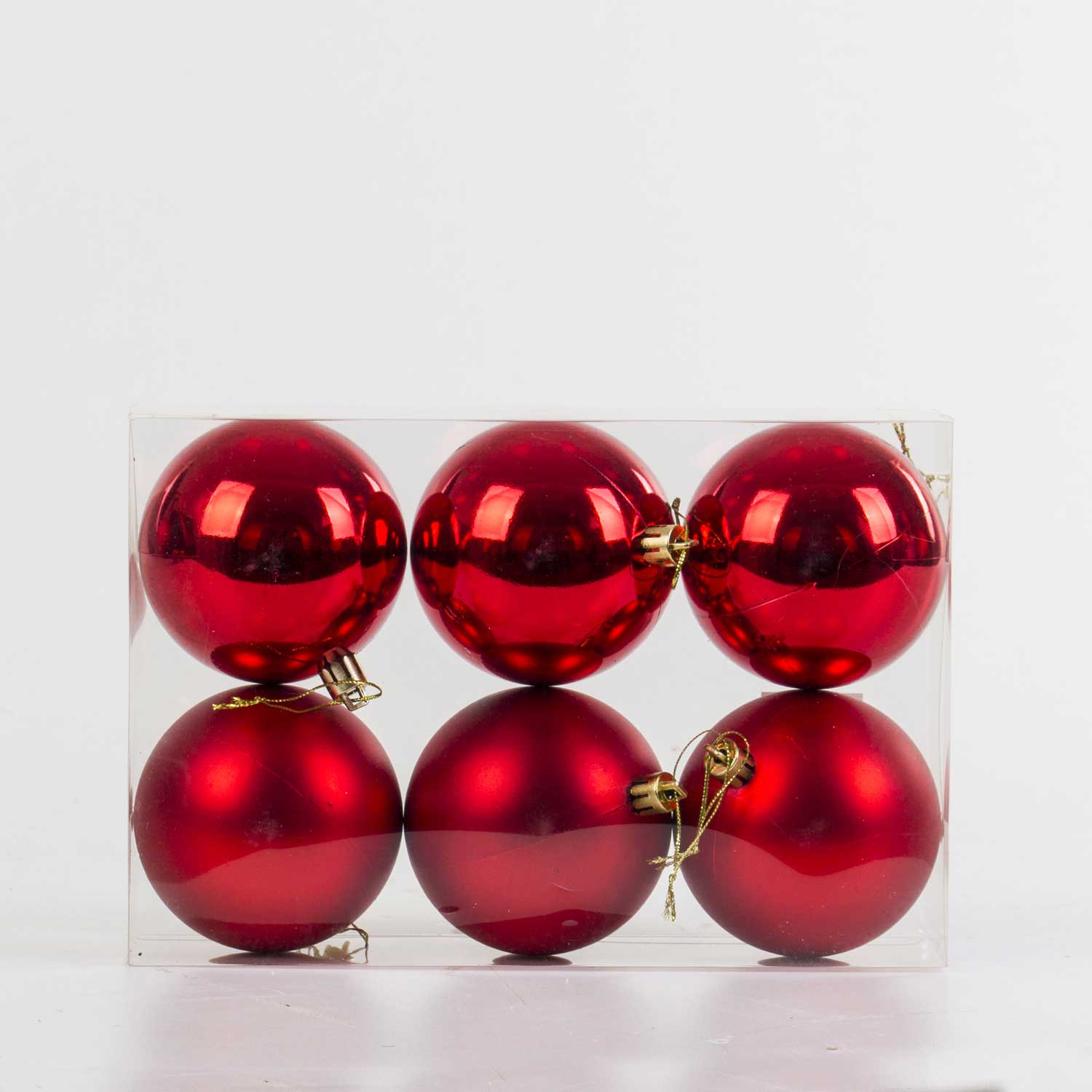 Dekoratif Yılbaşı Topu Kırmızı 6'lı Paket 8 Cm