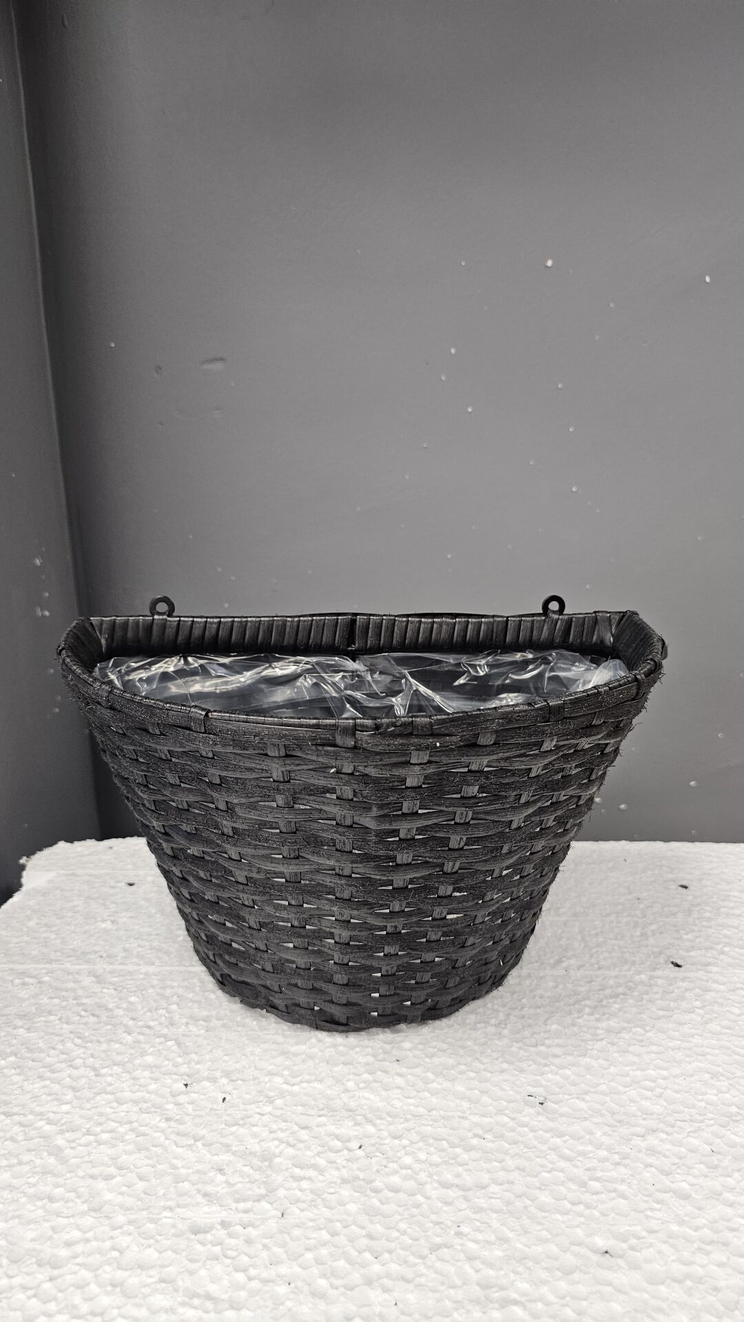 Duvar Sepeti, Rattan, Siyah - 18x18x30 cm