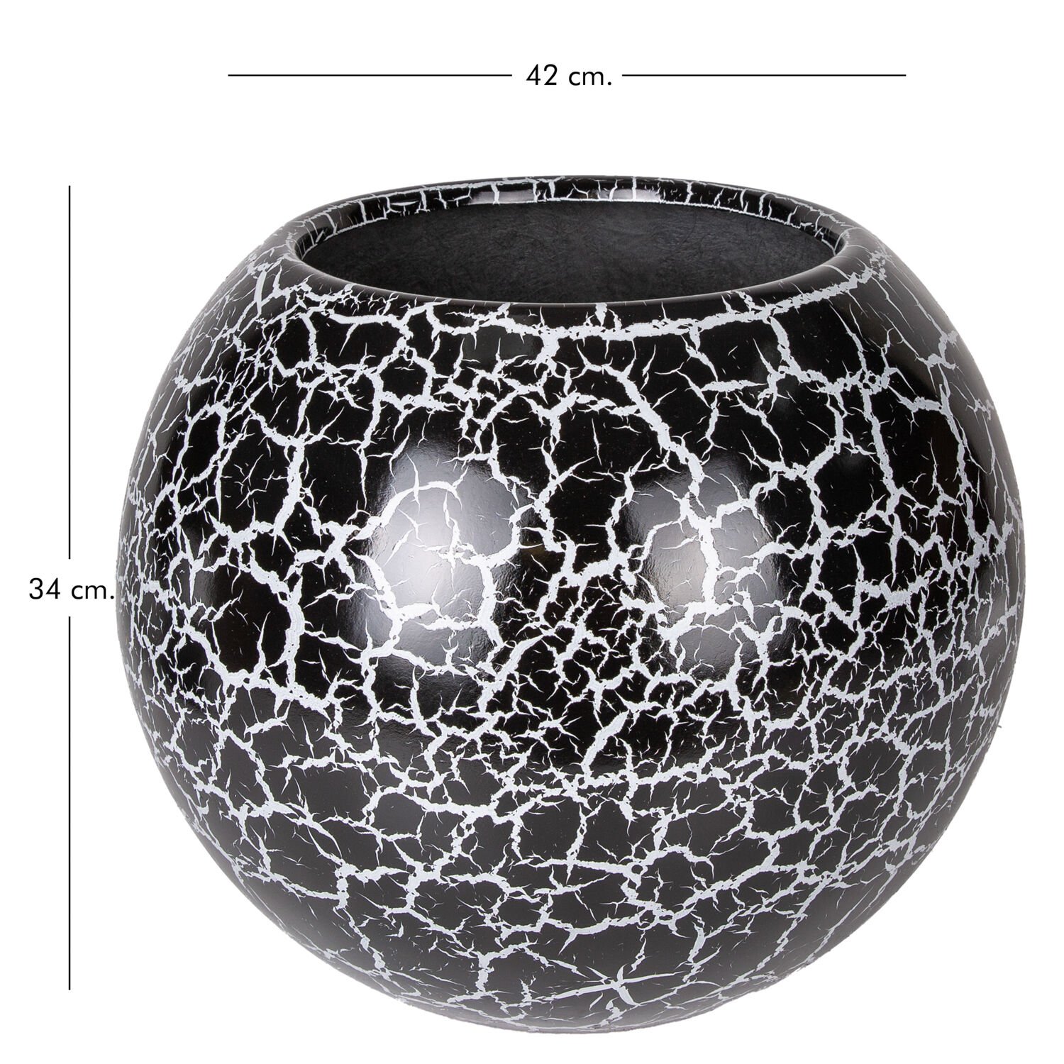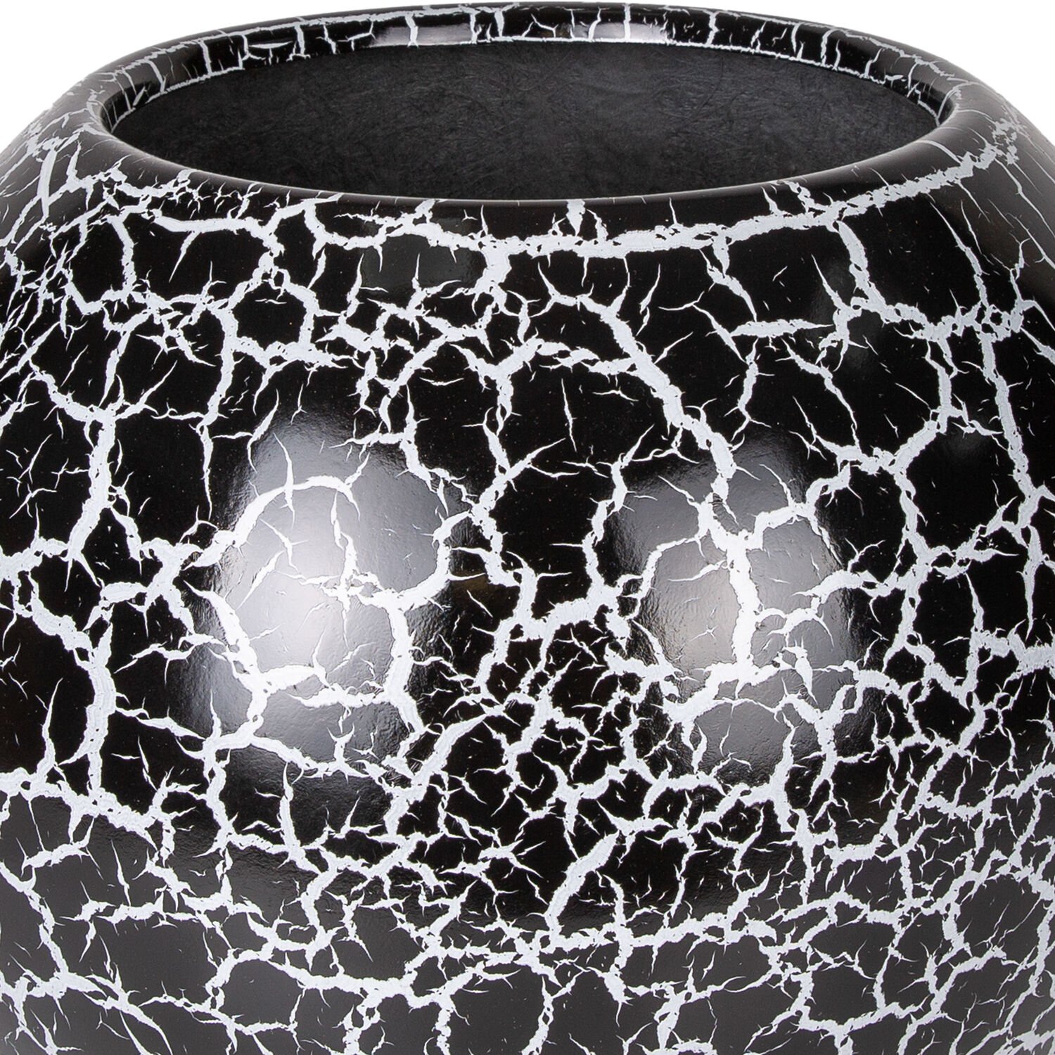 Fiber Saksı, Küre, Siyah Beyaz Çatlak Model - 42x34 cm