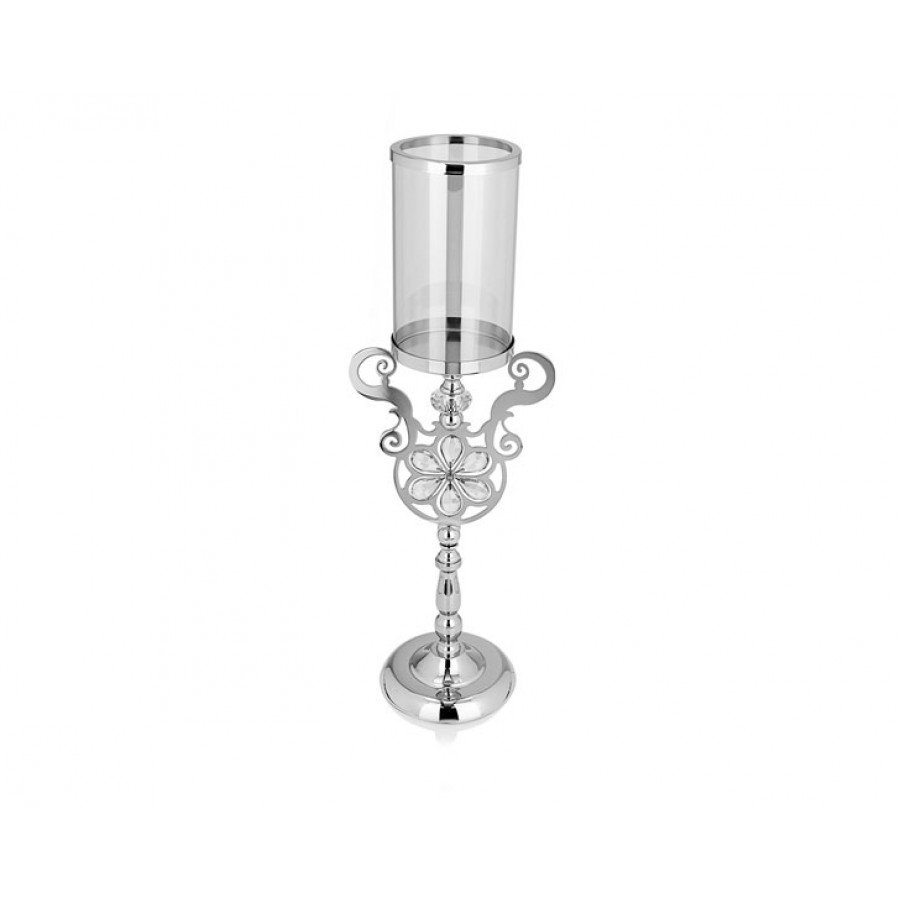 Gümüş Çiçek Detaylı Amber Camlı Mumluk 21*15*60