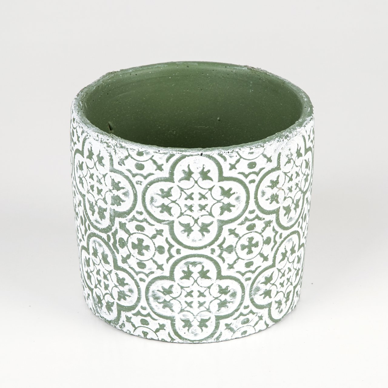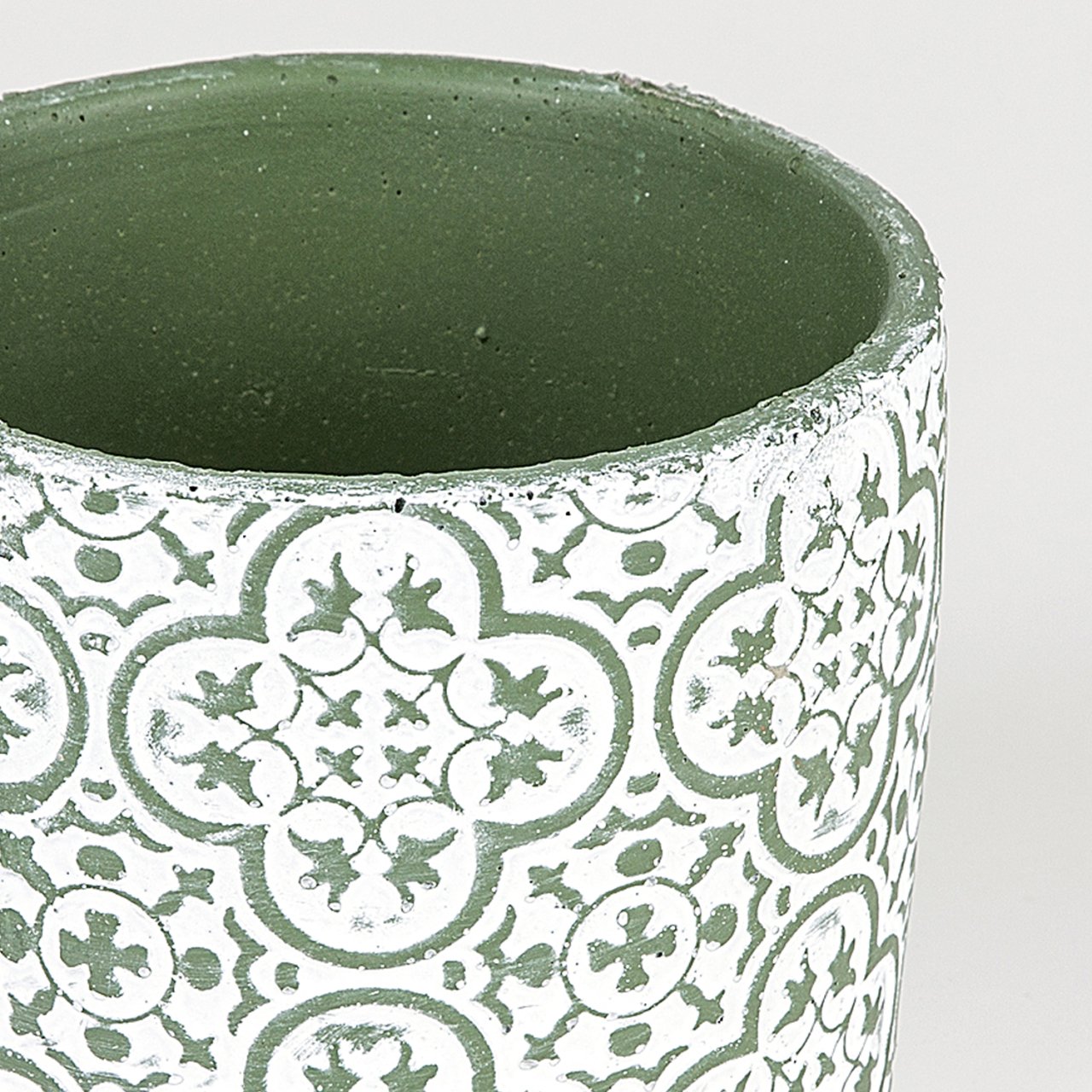 Hitit Desenli Beton Yeşil/beyaz Saksı 14x12 Cm