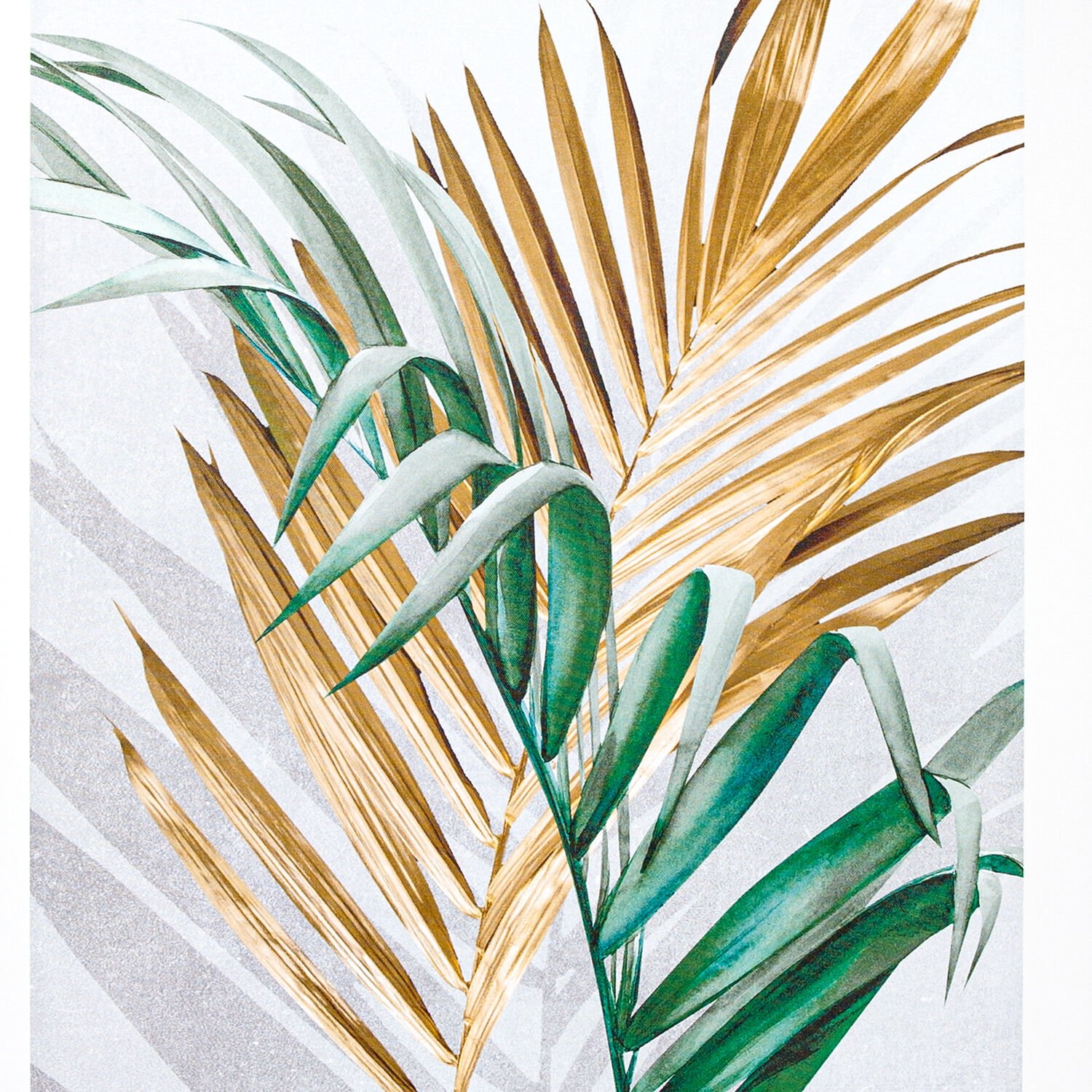 Kanvas Tablo, Areka Palmiyesi Yaprağı, Siyah Ahşap Çerçeveli, Gold-Yeşil - 60x3x80 cm