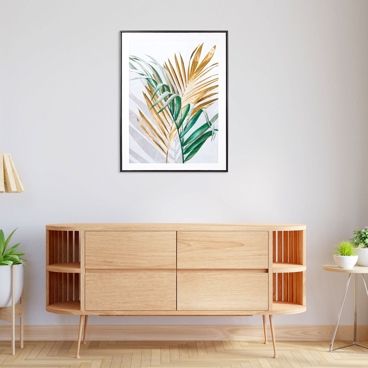 - Bir adet Siyah Ahşap Çerçeveli Areka Palmiyesi Yaprağı Kanvas Tablo