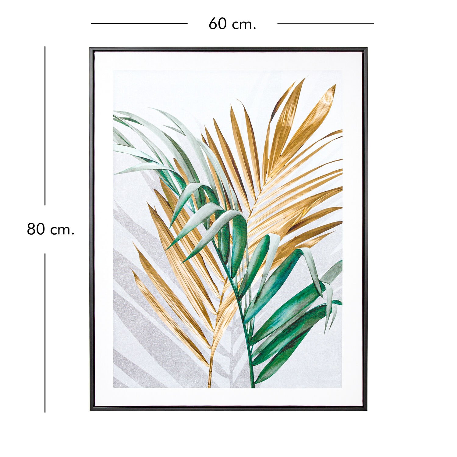 Siyah Ahşap Çerçeveli Areka Palmiyesi Yaprağı Kanvas Tablo Gold-Yeşil 60x80x3 Cm.