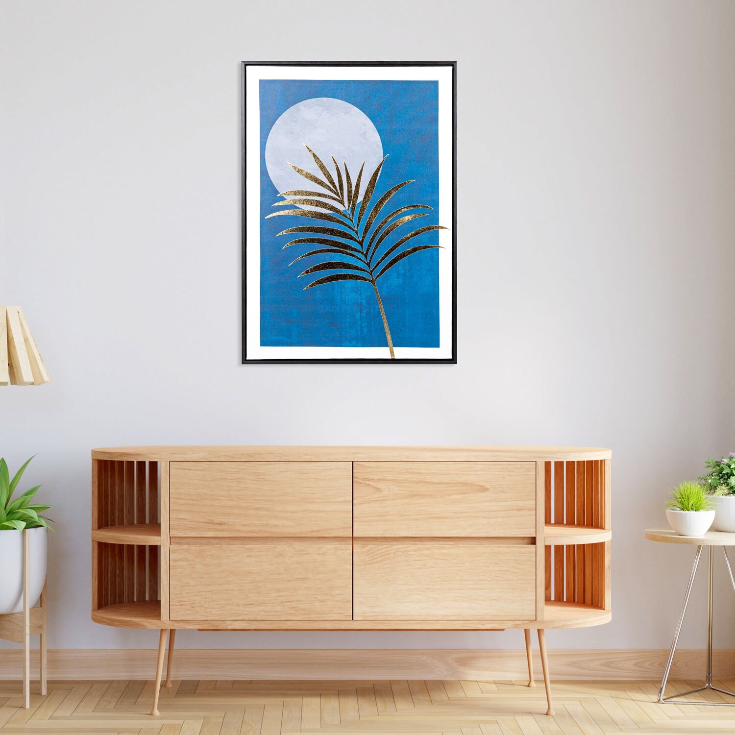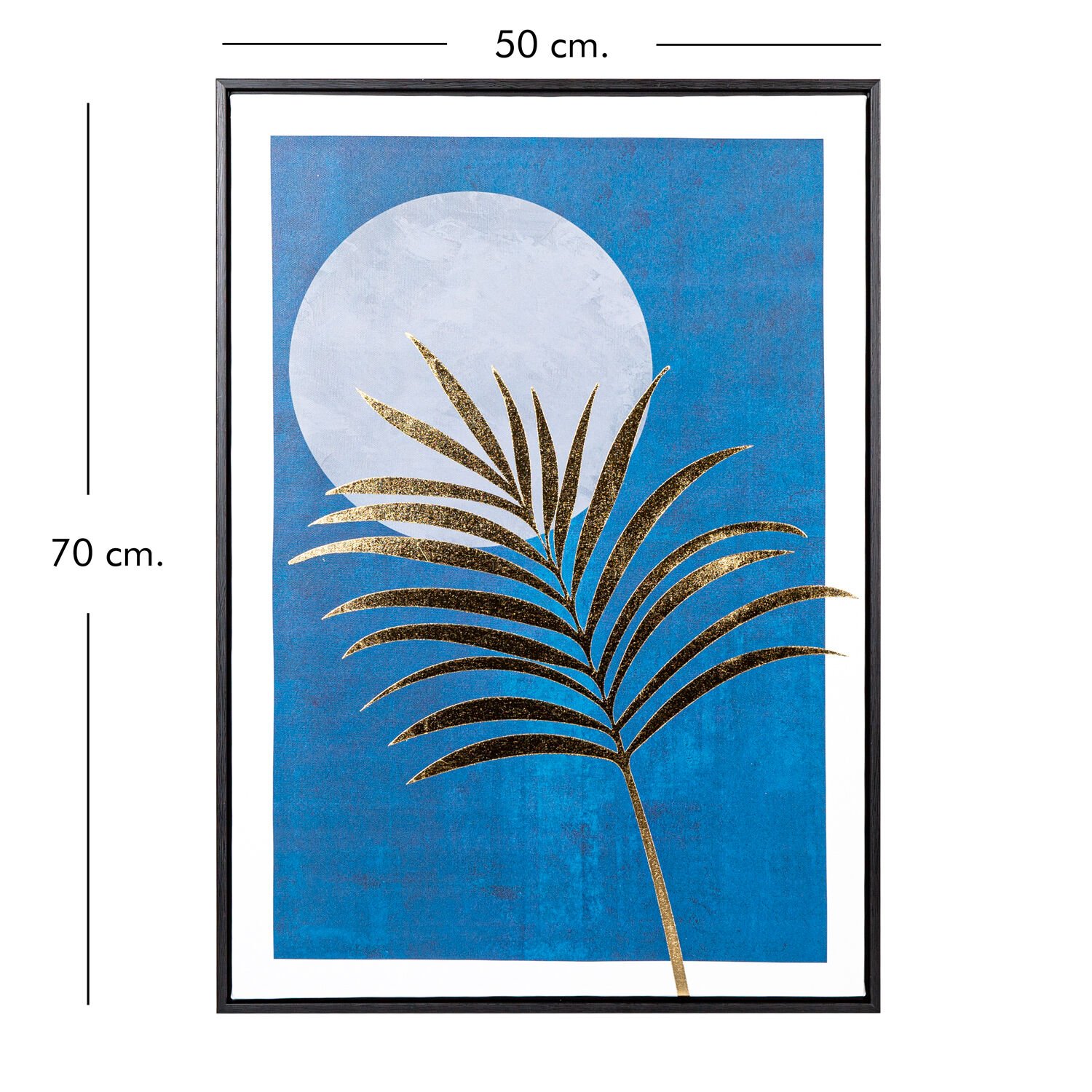 Siyah Ahşap Çerçeveli Gecede Areka Palmiyesi Yaprağı Kanvas Tablo Gold-Mavi 50x70x3 Cm.