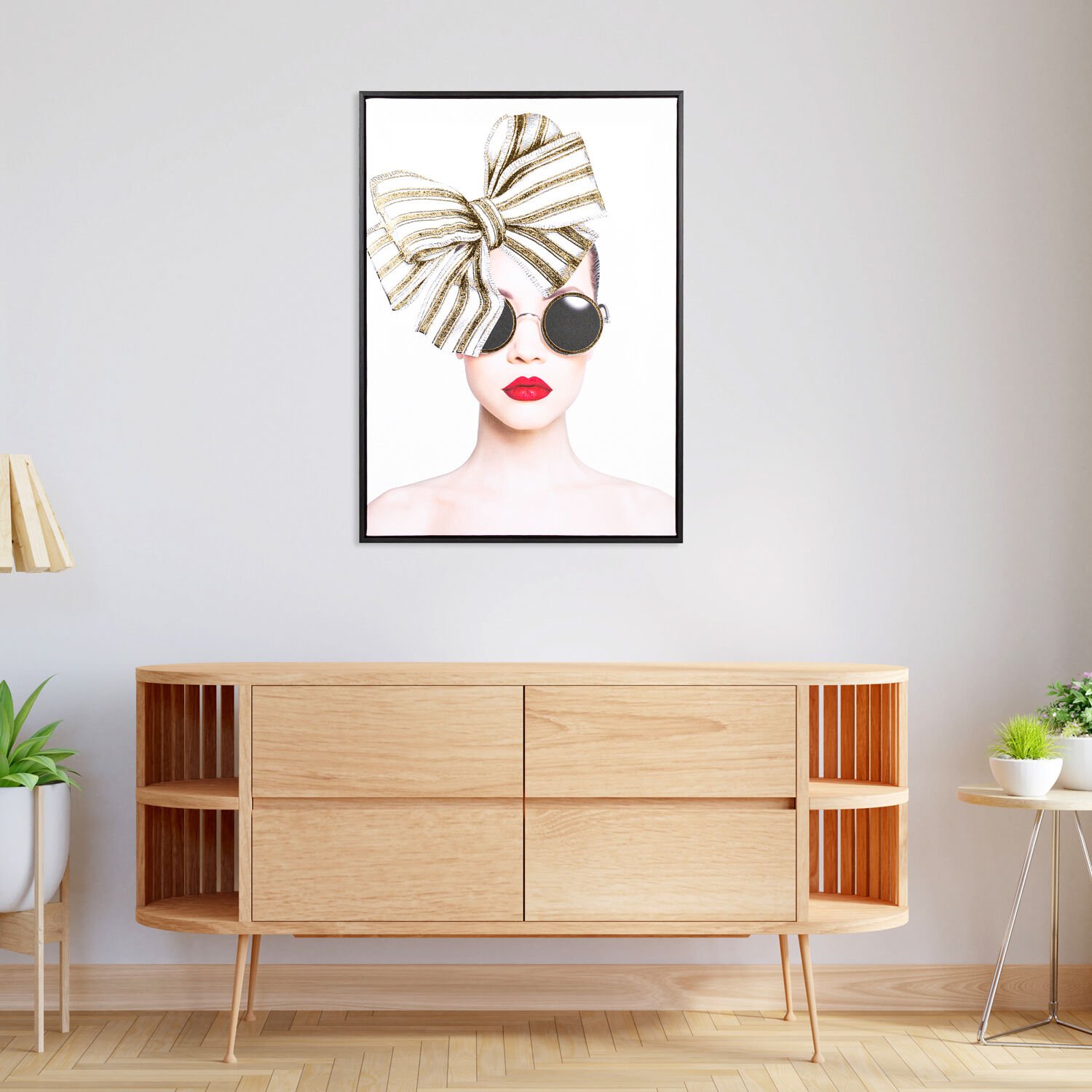 Kanvas Tablo, Kurdelalı Kadın, Siyah Ahşap Çerçeveli, Gold Kabartmalı, Gold-Beyaz - 50x3x70 cm