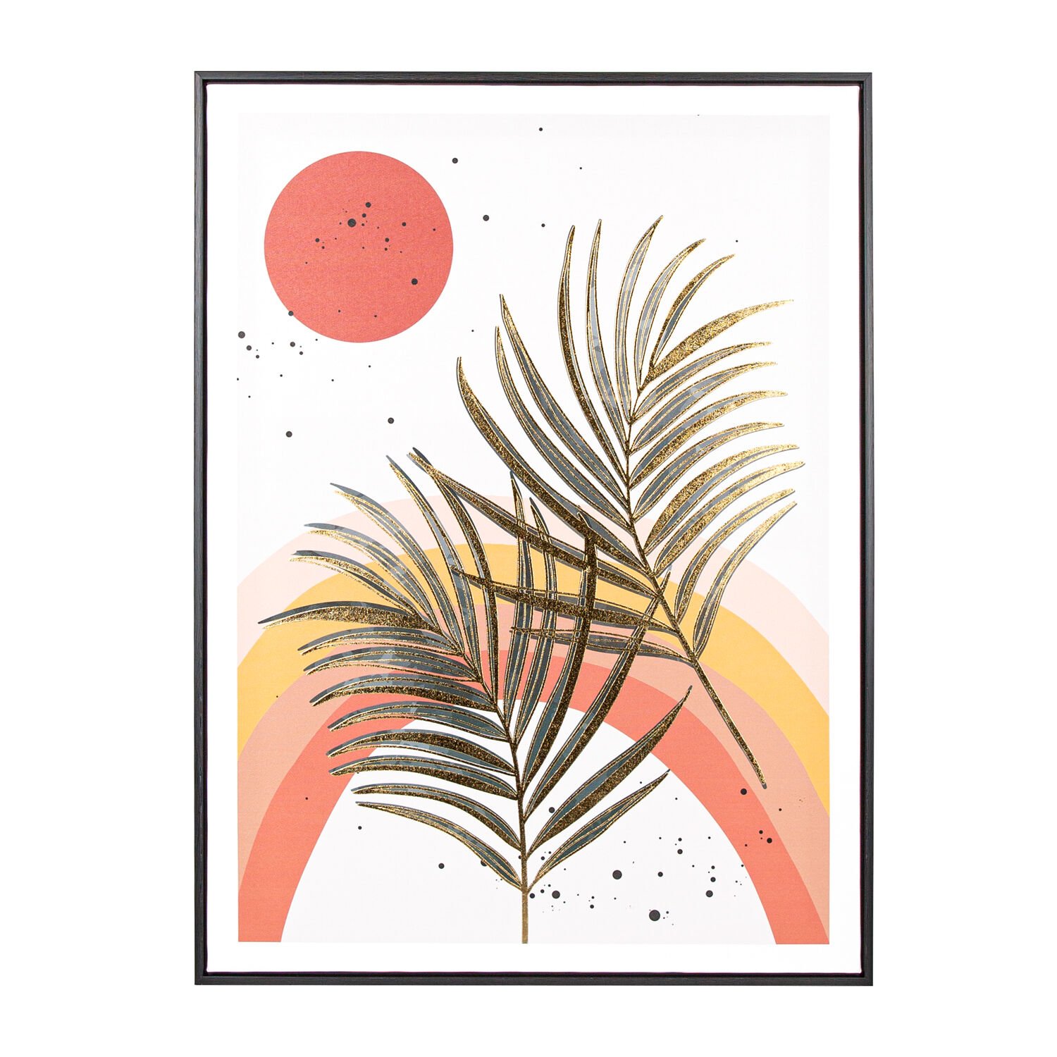 Siyah Ahşap Çerçeveli Gold Kabartmalı Palmiye Yaprağı Kanvas Tablo Bordo-Yeşil 60x80x3 Cm.