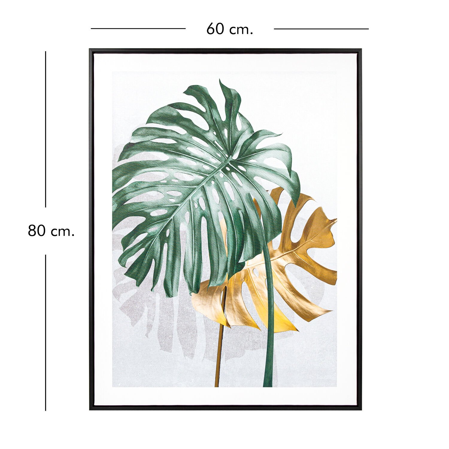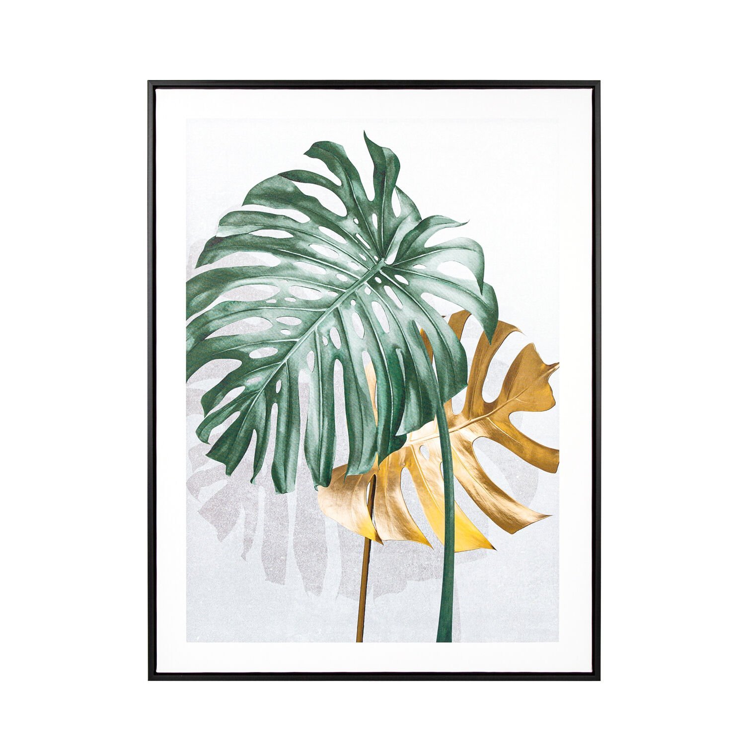 Siyah Ahşap Çerçeveli Palmiye Yaprağı Kanvas Tablo Gold-Yeşil 60x80x3 Cm.