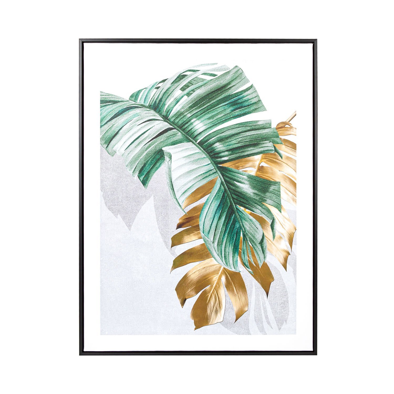 Siyah Ahşap Çerçeveli Palmiye Yaprağı Kanvas Tablo Gold-Yeşil 60x80x3 Cm.