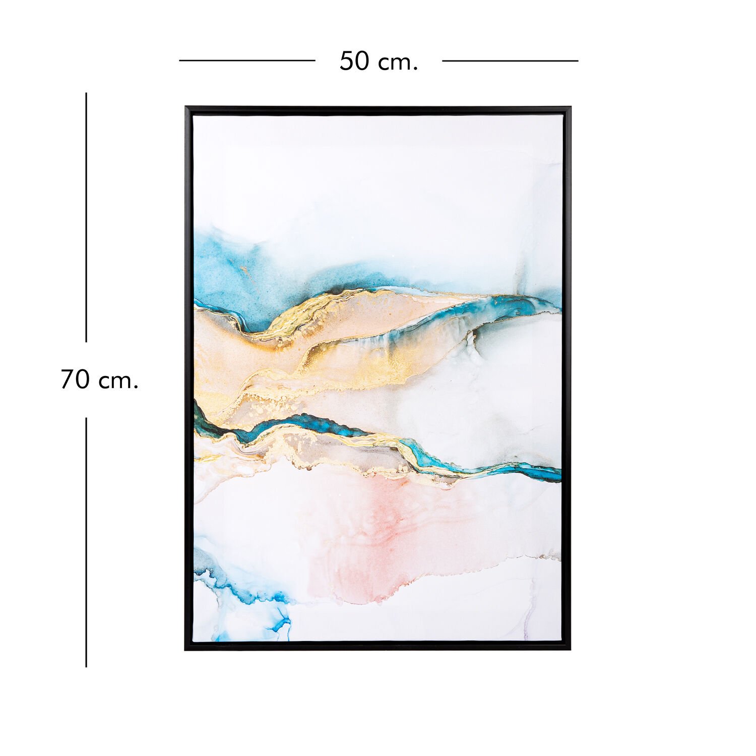 Kanvas Tablo, Soyut, Siyah Ahşap Çerçeveli, Mavi-Sarı - 50x3x70 cm