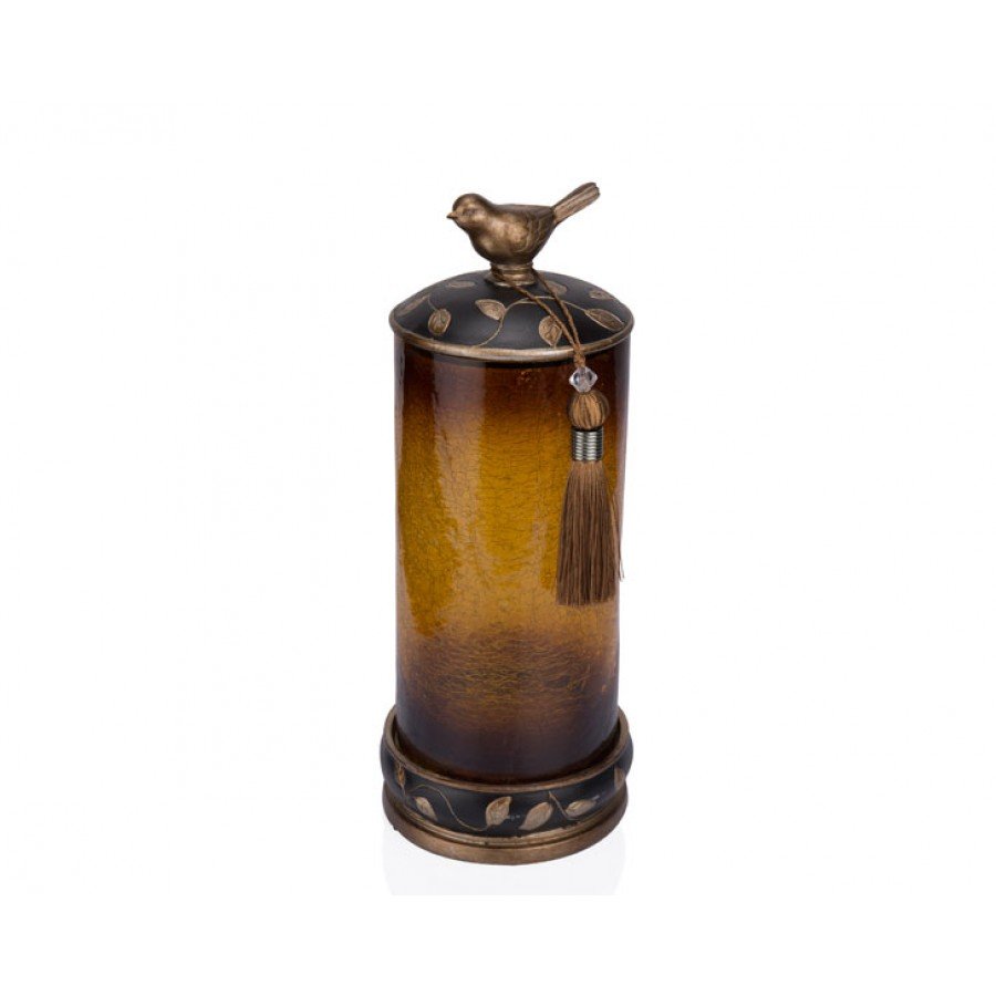 Kuşlu Siyah Cam Dekoratif Kavanoz 15*15*37