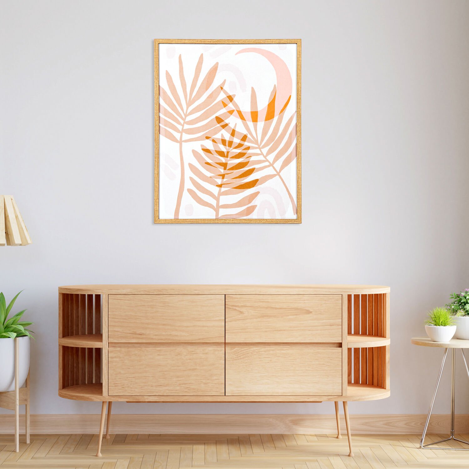 Ahşap Çerçeveli Areka Palmiyesi Yaprağı MDF Üzeri Baskı Tablo Somon-Beyaz 40x50x1,8 Cm.