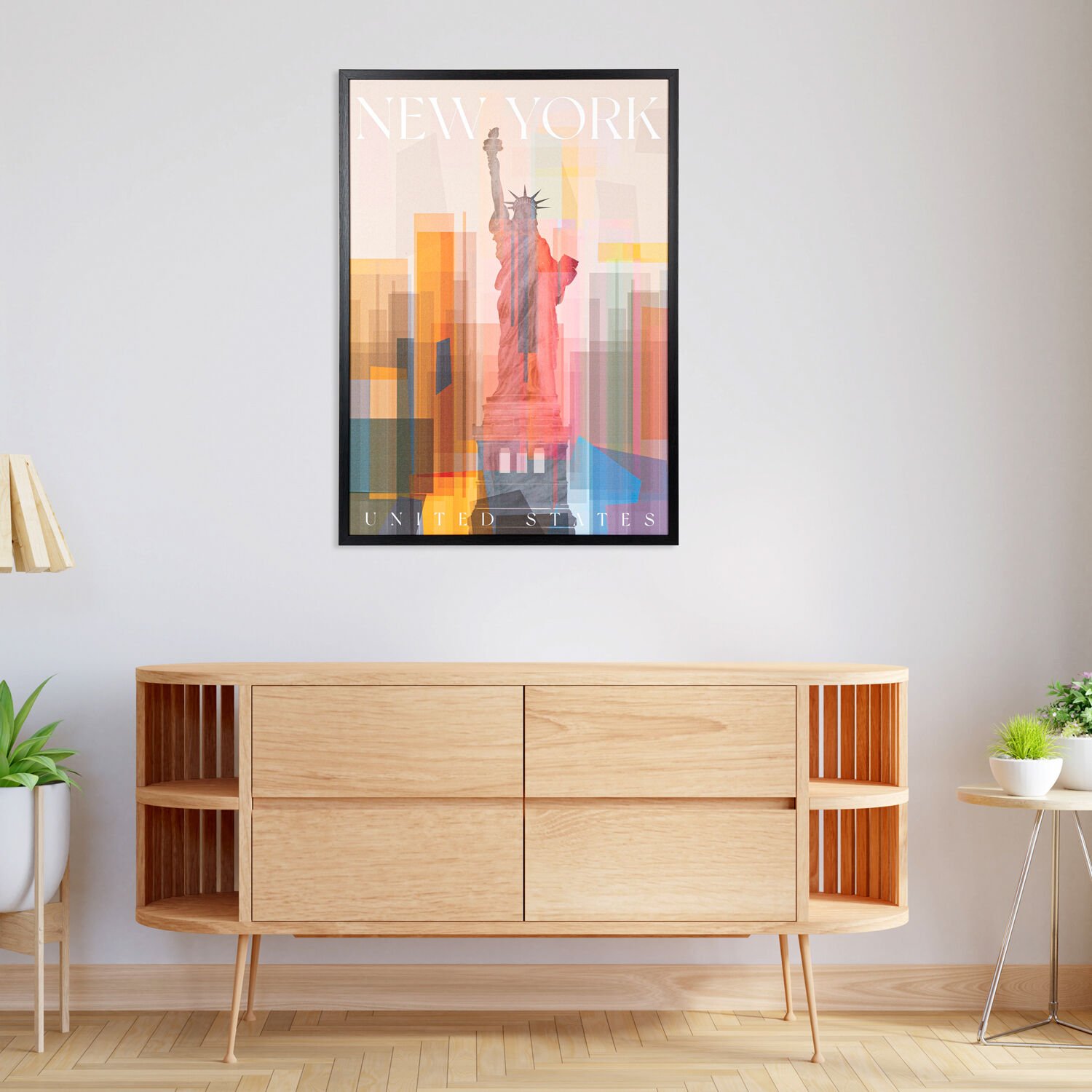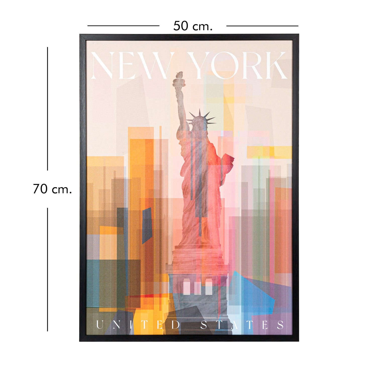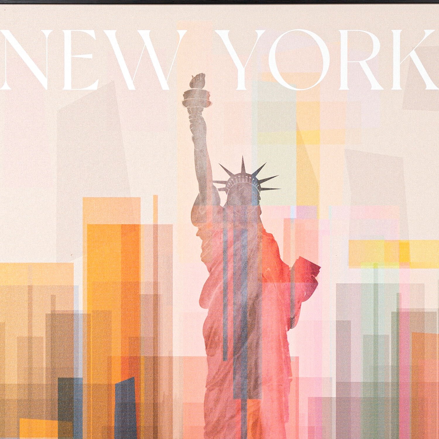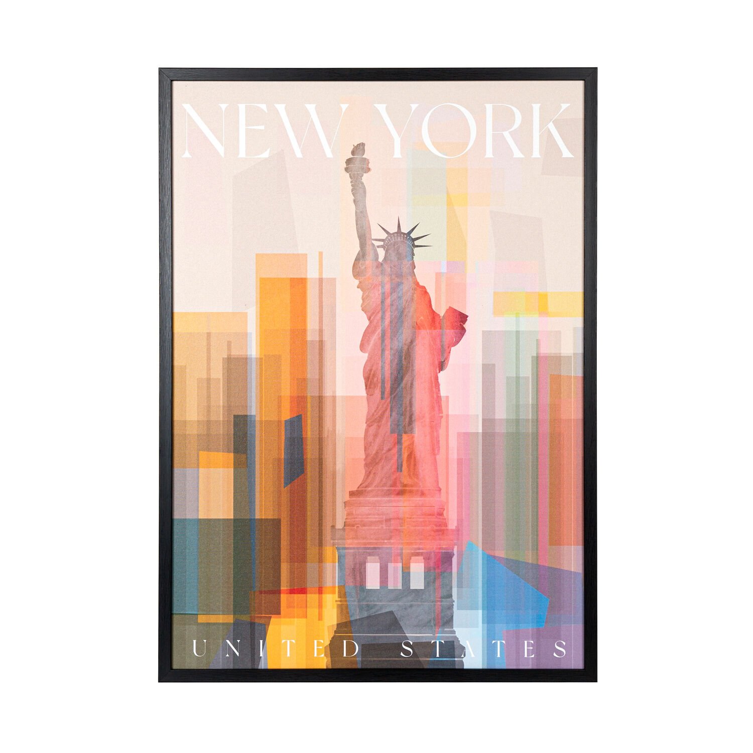 MDF Tablo, New York Özgürlük Heykeli, Siyah Ahşap Çerçeveli, Kırmızı-Turuncu - 50x2,5x70 cm