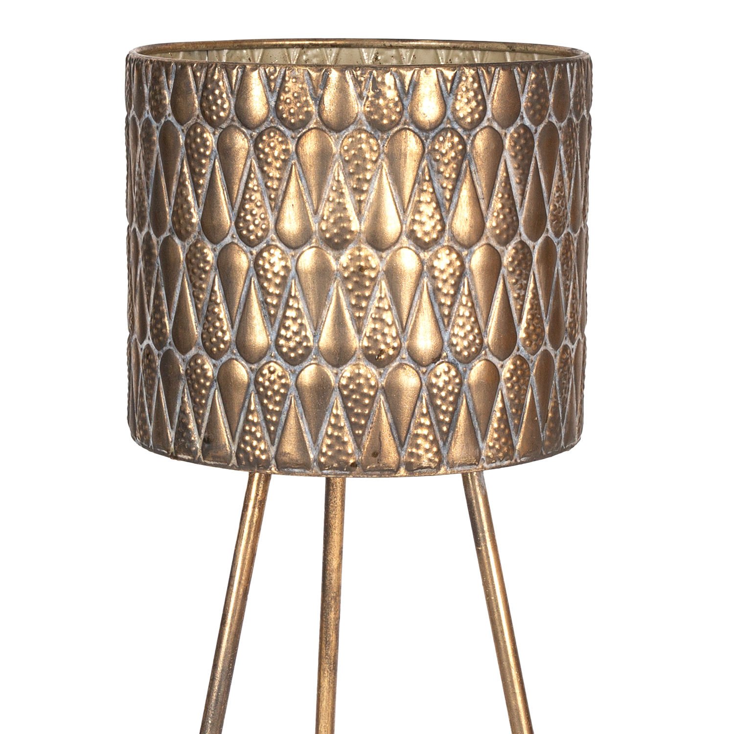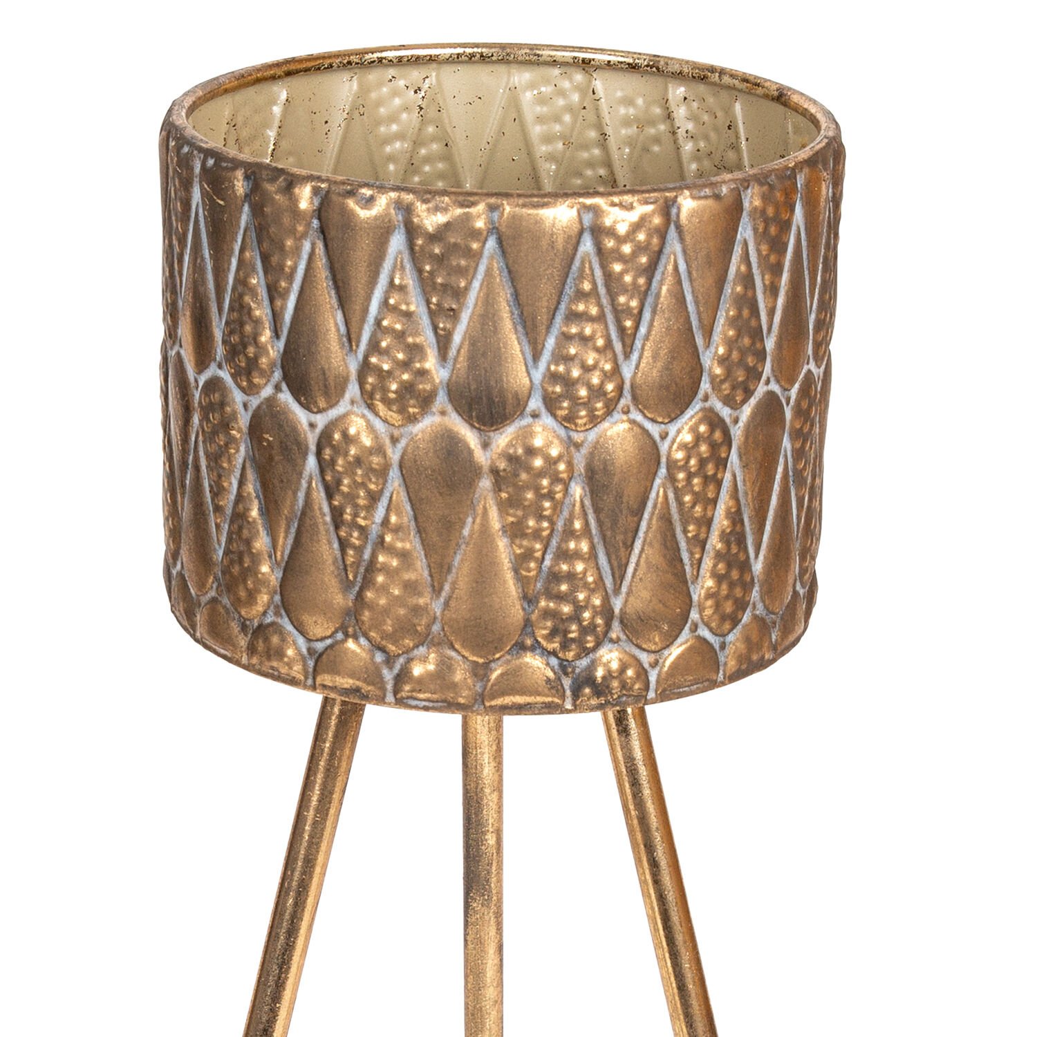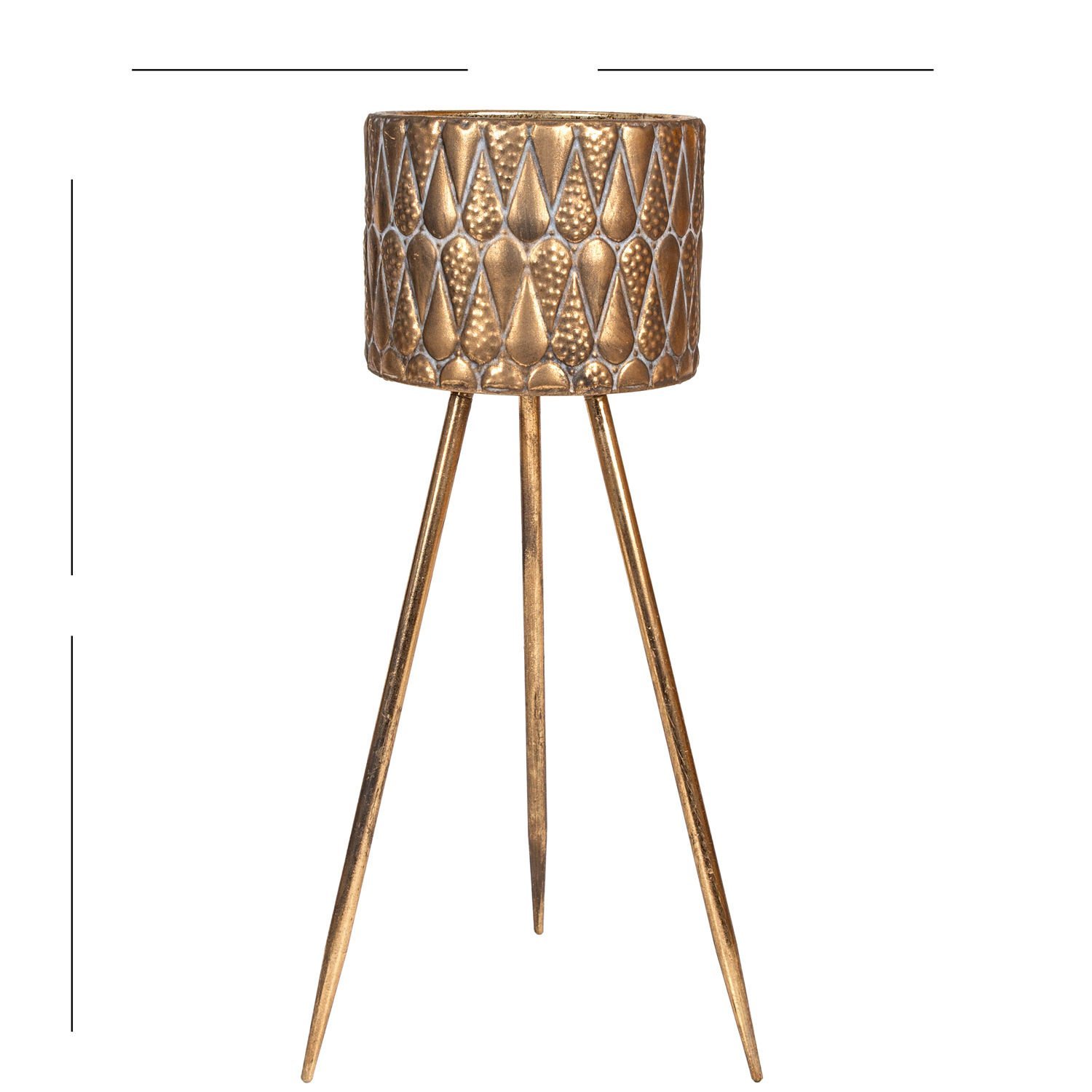 Kabartma Damla Desenli Metal Çiçeklik Saksı Altın Eskitme 28X77,5 Cm.