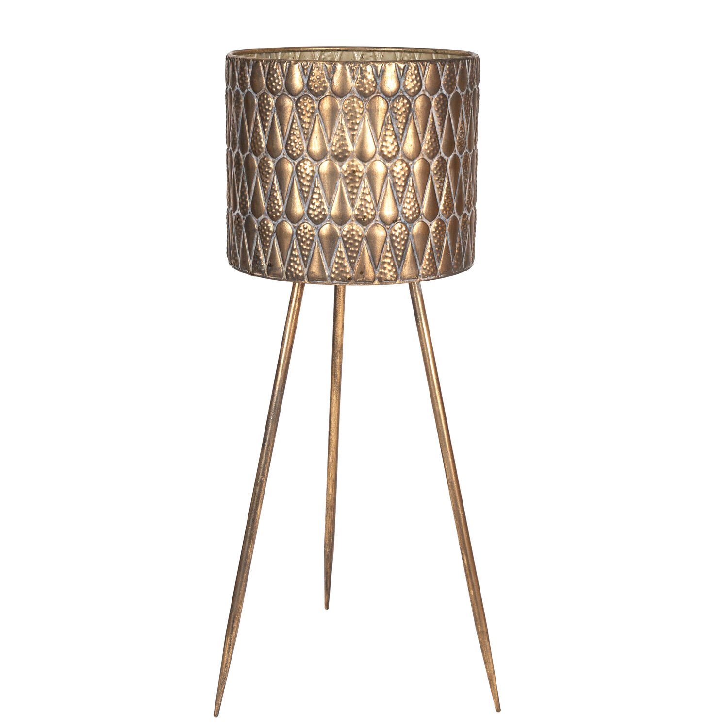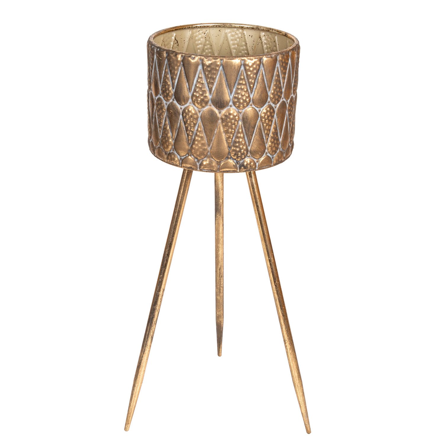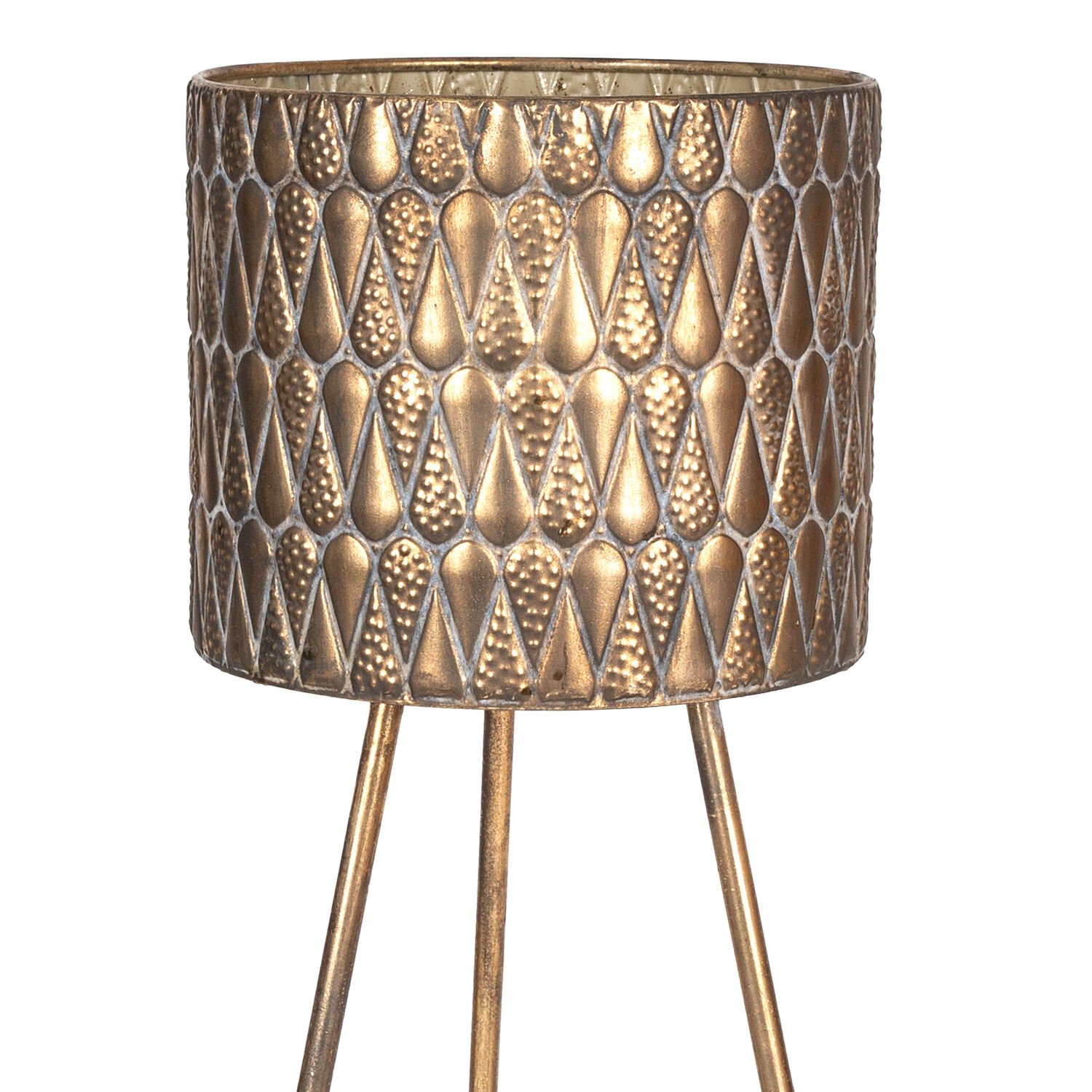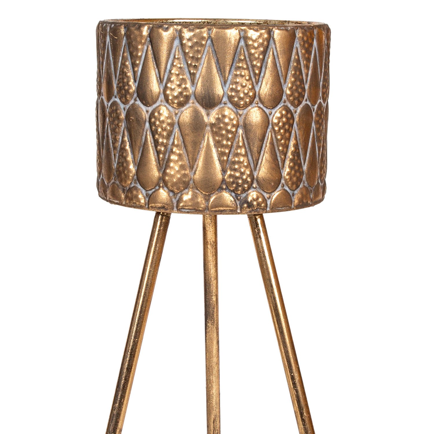 Metal Çiçeklik Saksı, Kabartma Damla Desenli, Altın Eskitme - 28x77,5 cm