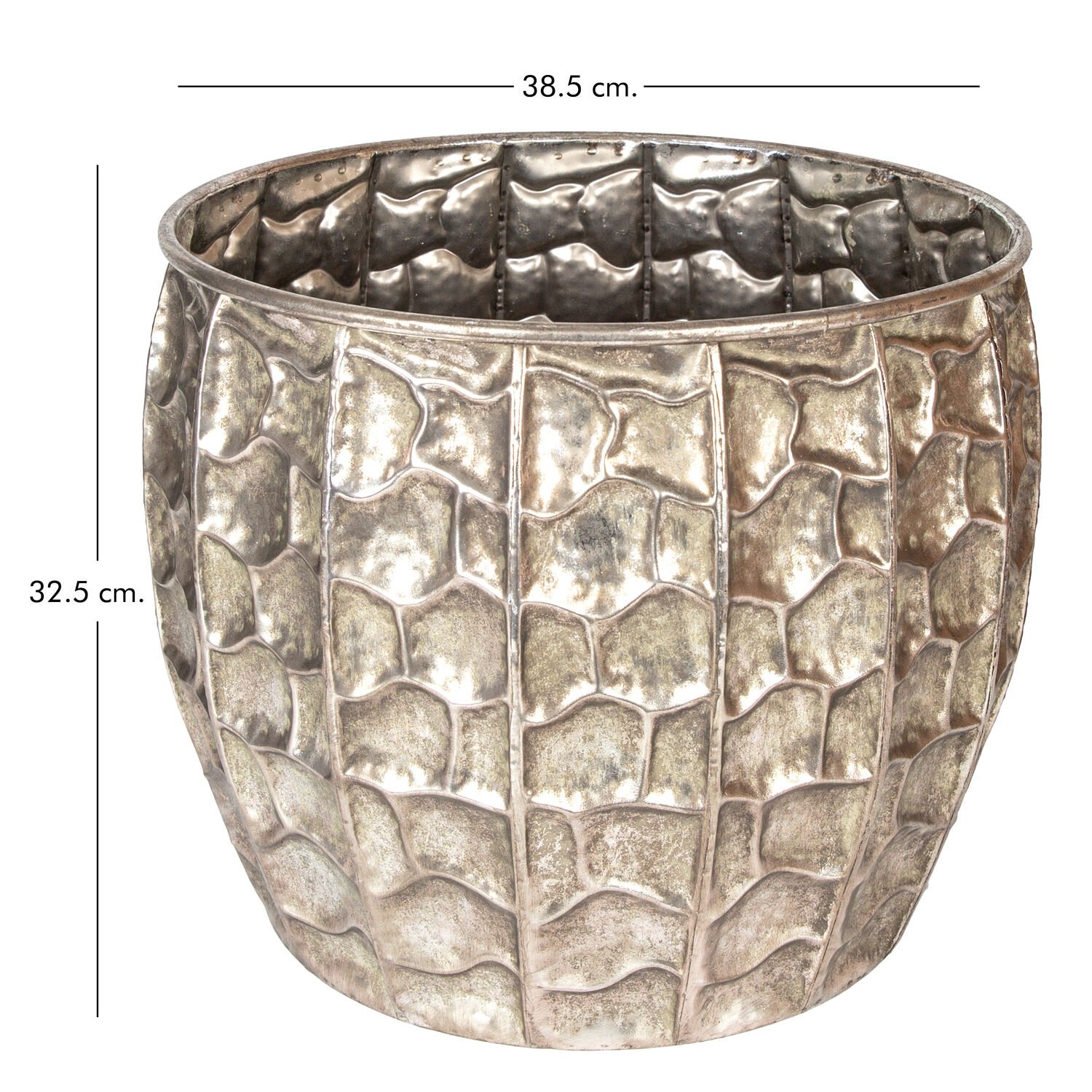 Kabartma Desenli Metal Çiçeklik Saksı Gümüş Eskitme 37,5x32,5 Cm.