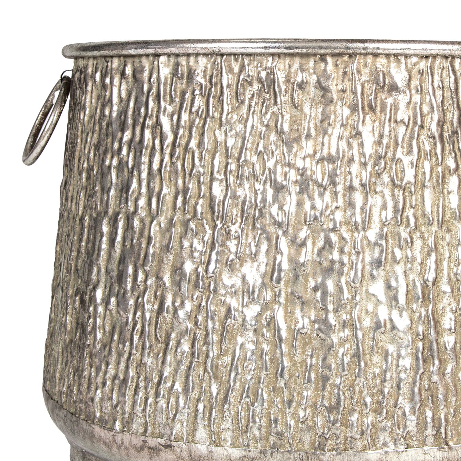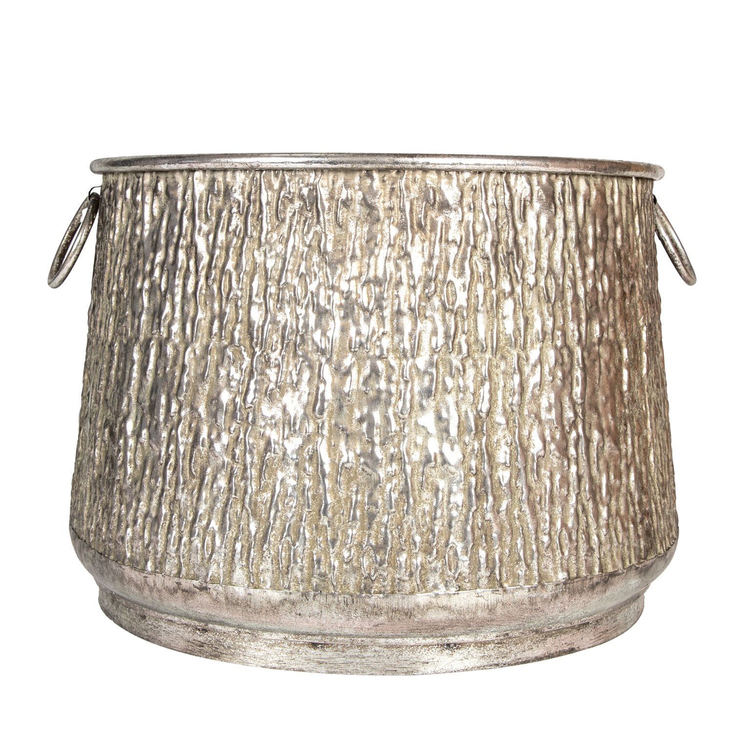Kabartma Desenli Kulplu Metal Çiçeklik Kazan Saksı Gümüş Eskitme 45x33 Cm.