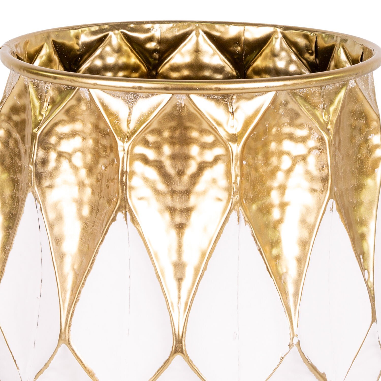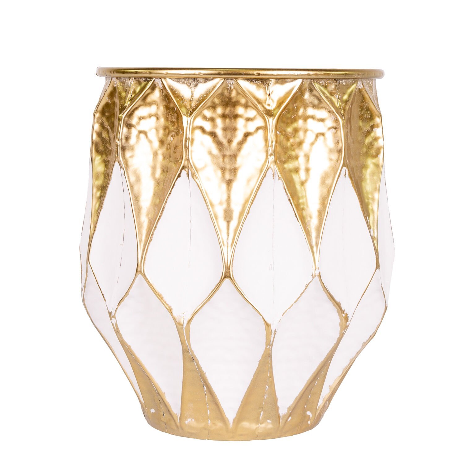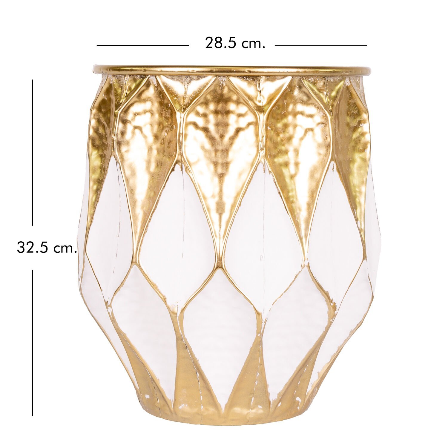 Metal Saksı Kabartma Desenli Gold-Beyaz 28,5x32,5 Cm.