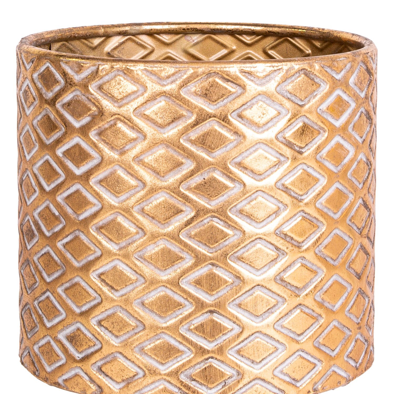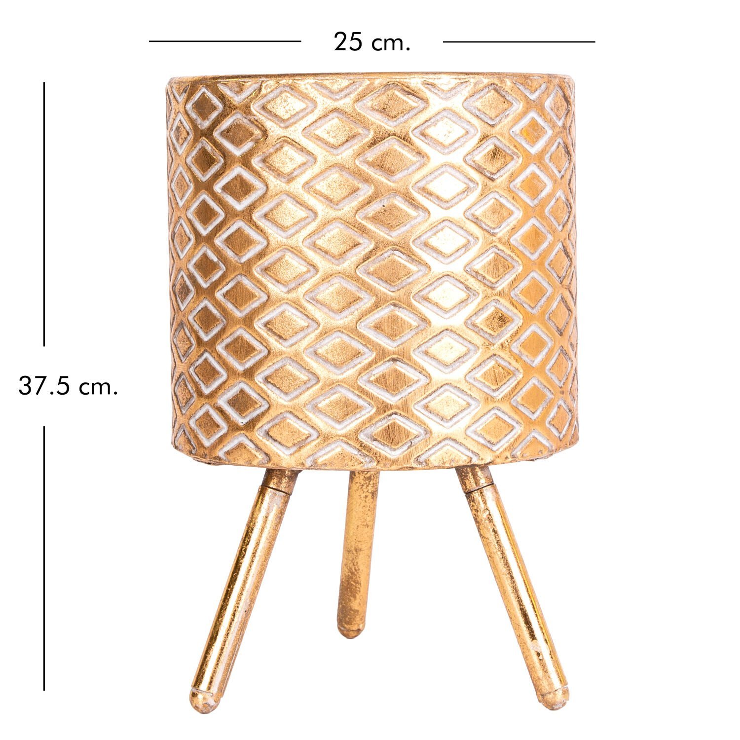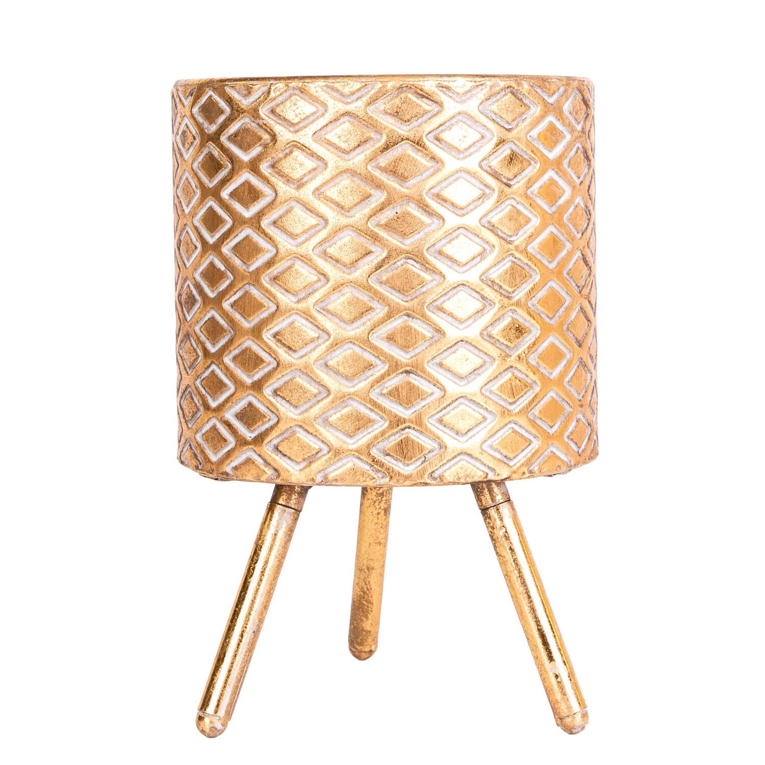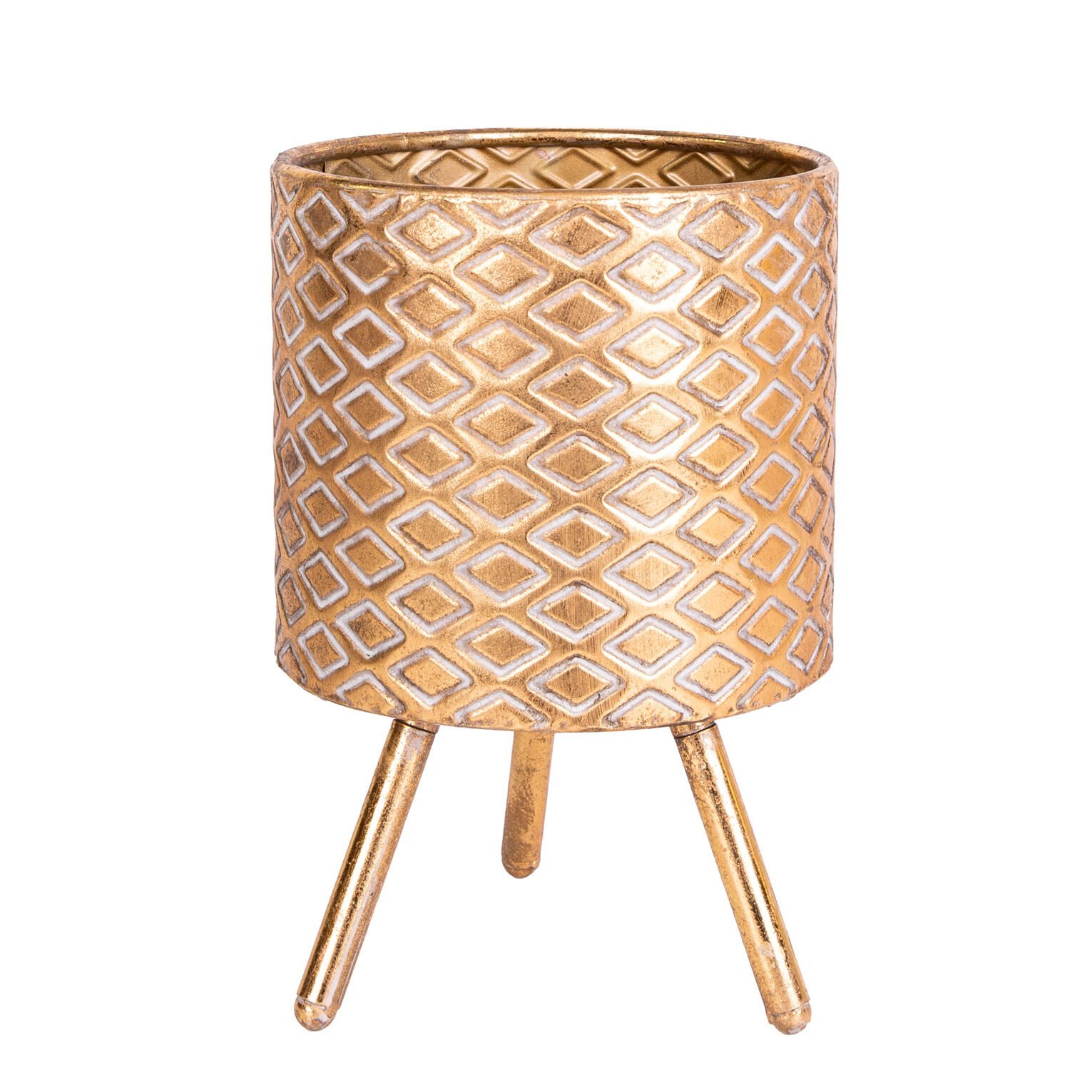 Metal Saksı Ayaklı Kabartma Desenli Gold 25x37,5 Cm.