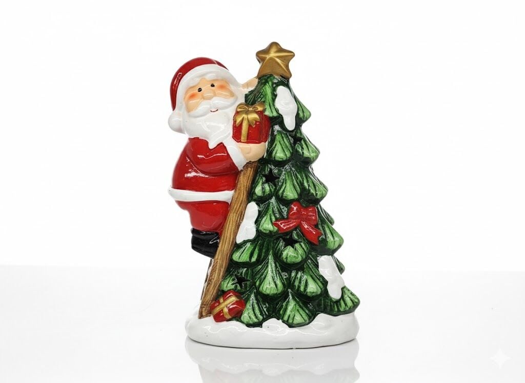 Noel Baba Dekoru, Yılbaşı Ağacına Tırmanan, Hediyeli - Işıklı, Seramik