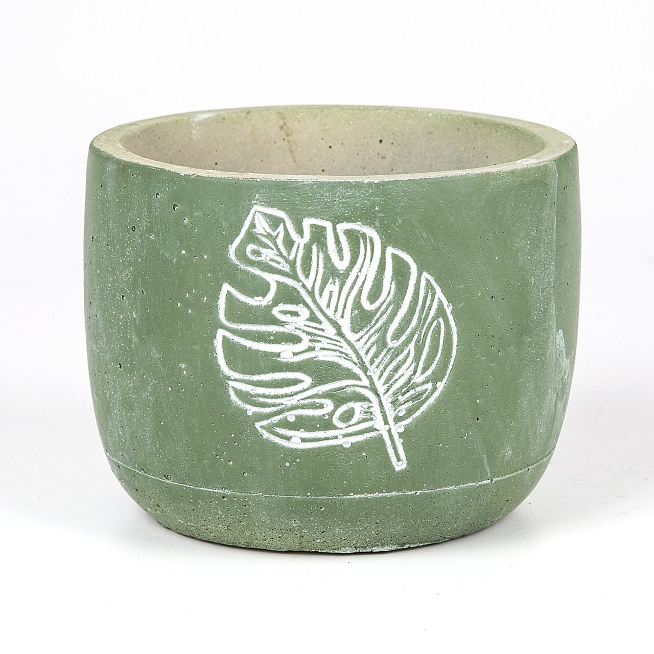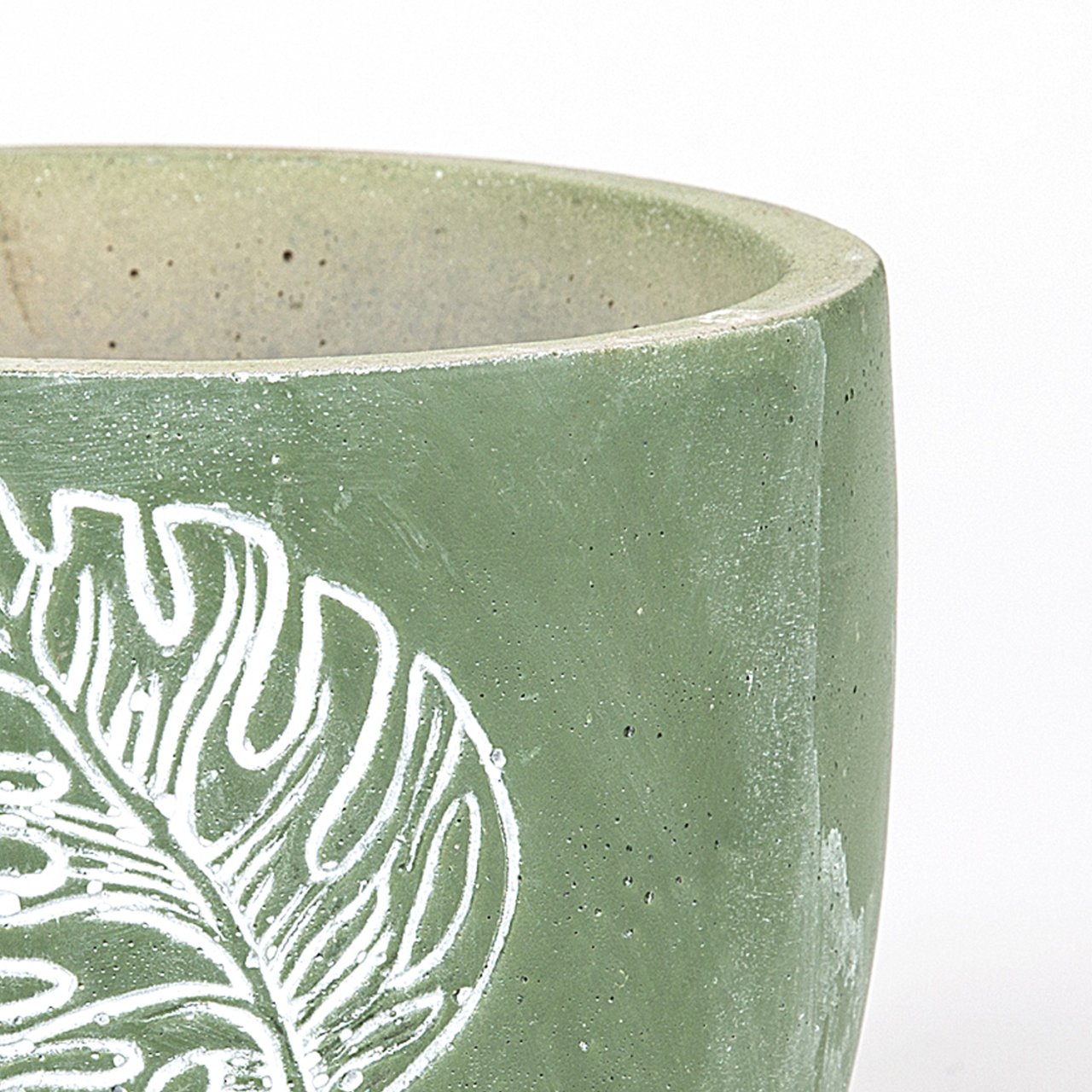 Philo Yaprak Desenli Beton Yeşil Saksı 15x12 Cm