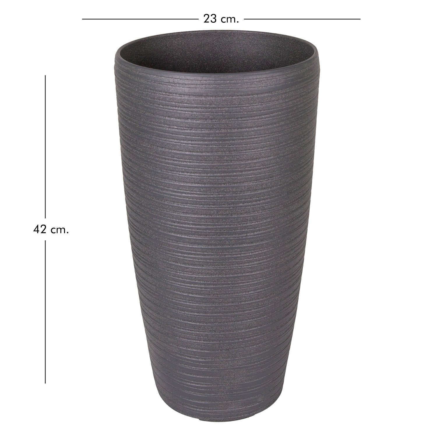 Plastik Saksı, Konik, İç ve Dış Mekan, Antrasit Gri, Küçük Boy - 23x23x42 cm