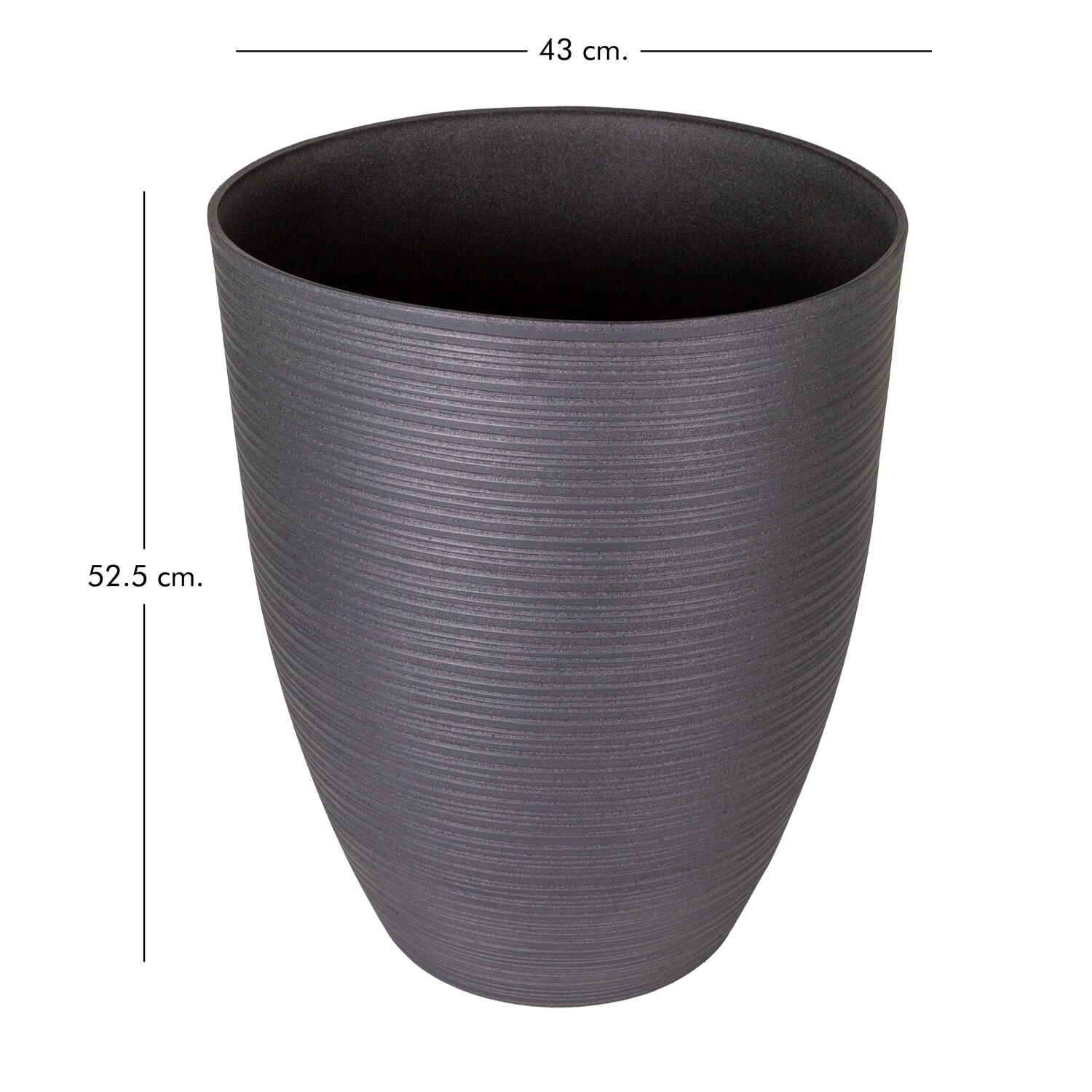 Plastik Saksı, Oval, İç ve Dış Mekan, Antrasit Gri, Büyük Boy - 43x43x52,5 cm