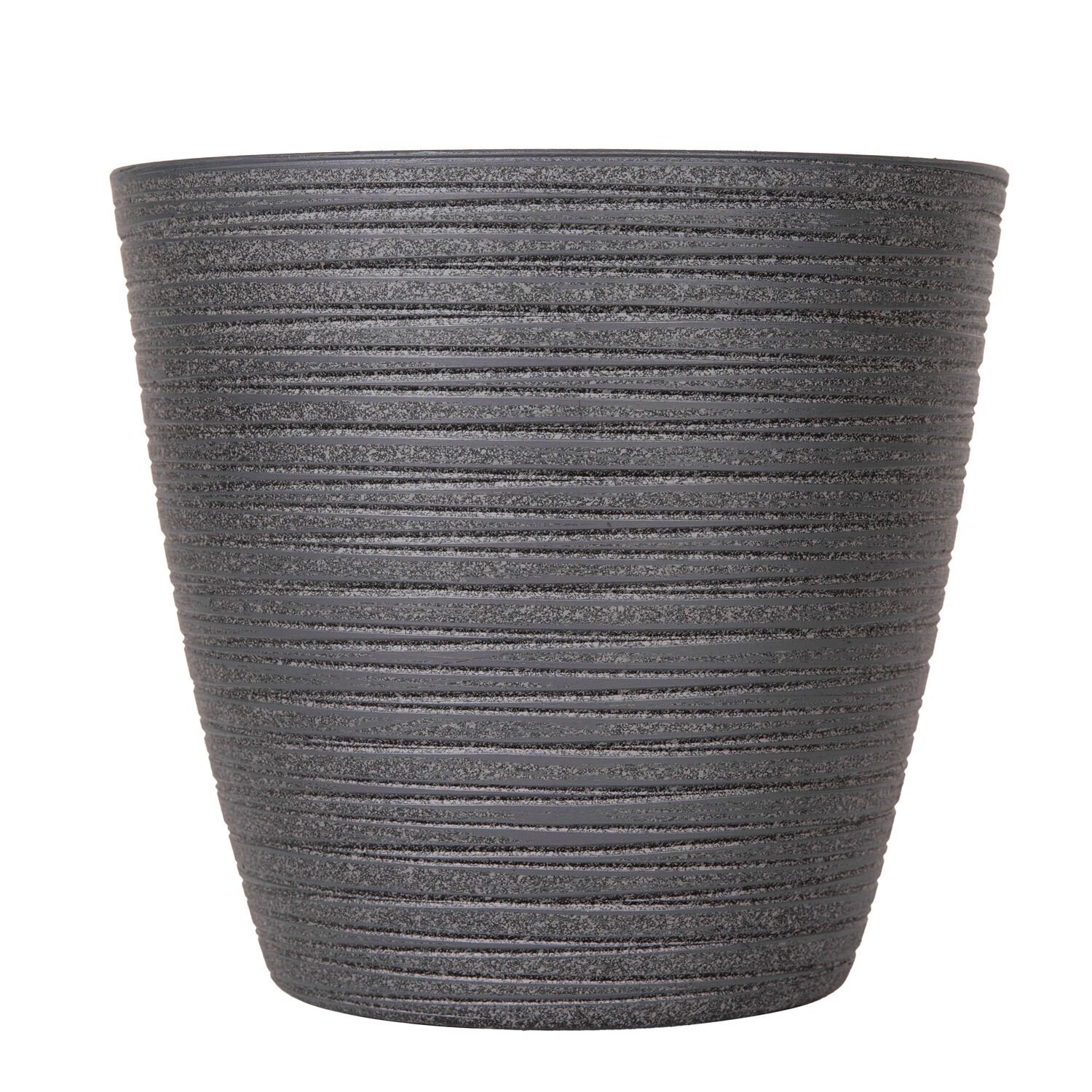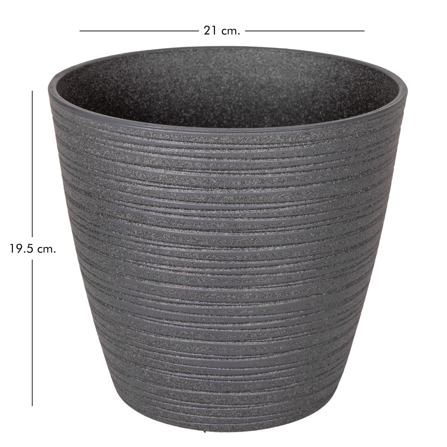 Plastik Saksı, Oval, İç ve Dış Mekan, Antrasit Gri, Mini Boy - 21x21x19,5 cm