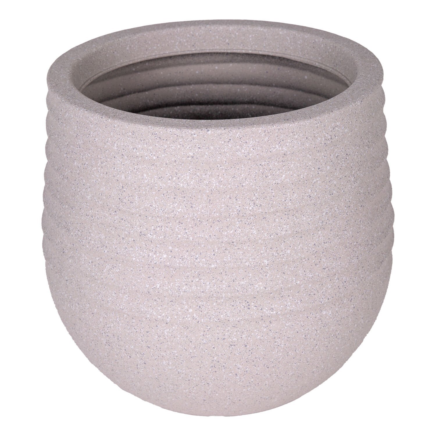 Plastik Saksı, Oval, İç ve Dış Mekan, Bej, Küçük Boy - 30x30x27,5 cm