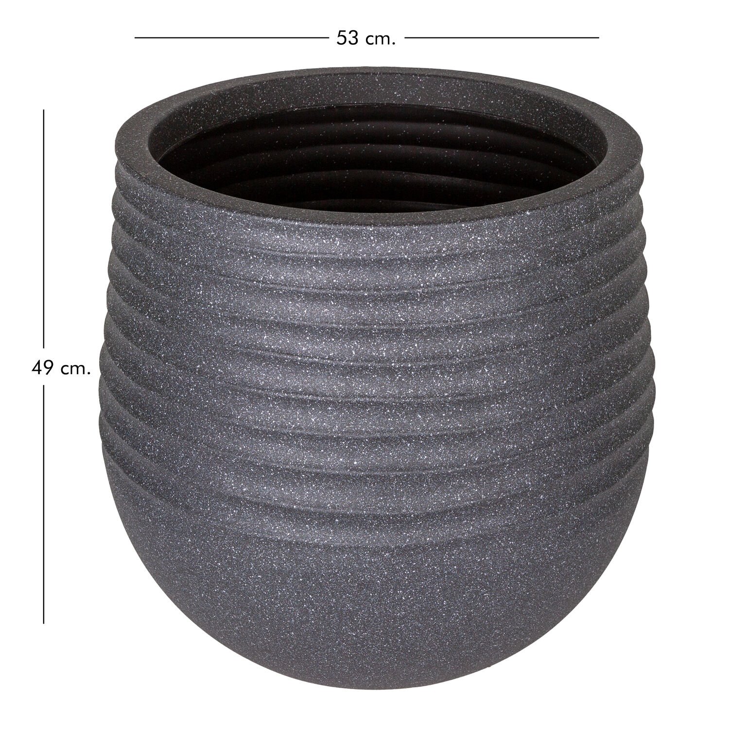 Plastik Saksı, Oval, İç ve Dış Mekan, Siyah, Büyük Boy - 53x53x49 cm