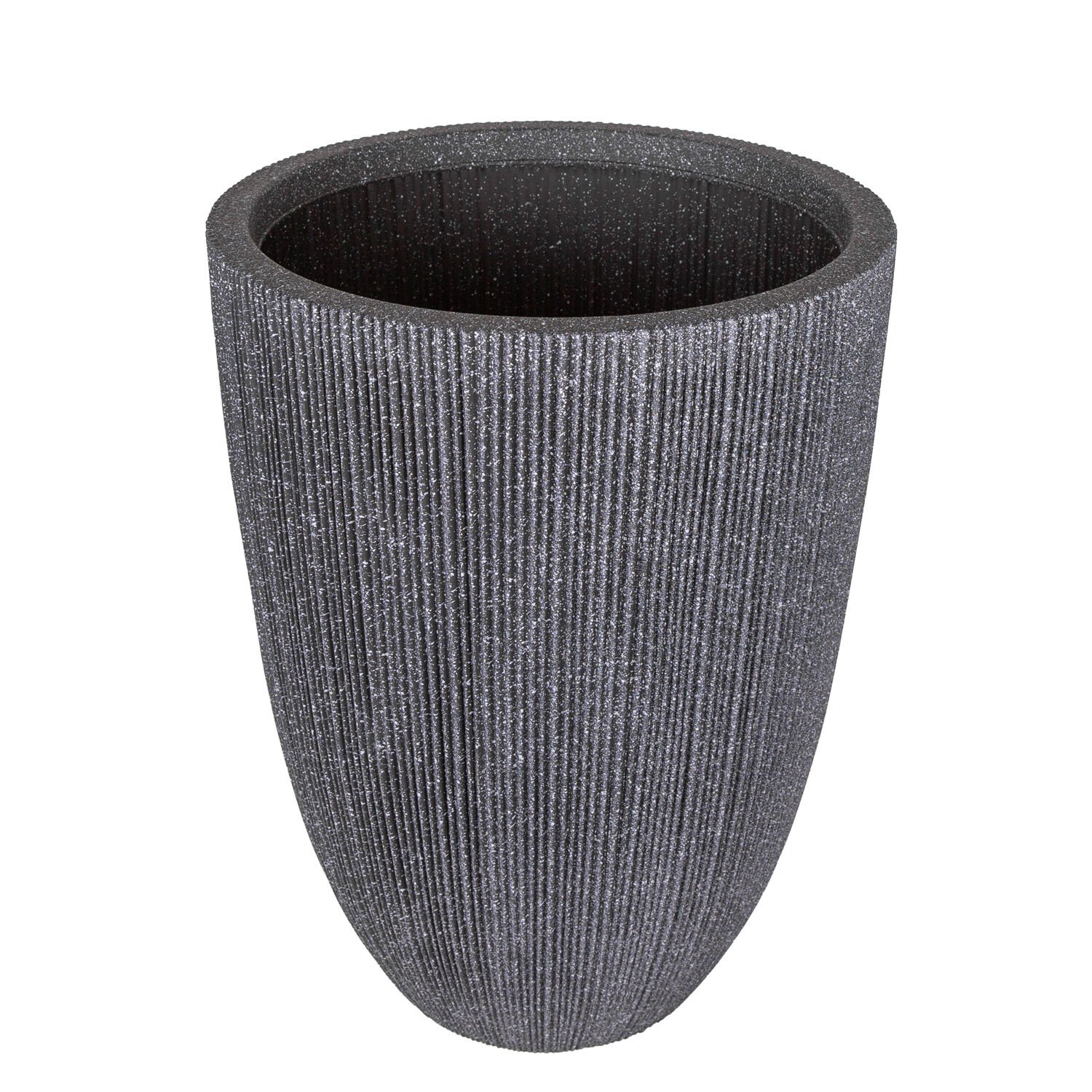 Plastik Saksı, Oval, İç ve Dış Mekan, Siyah, Orta Boy - 37x37x48,5 cm