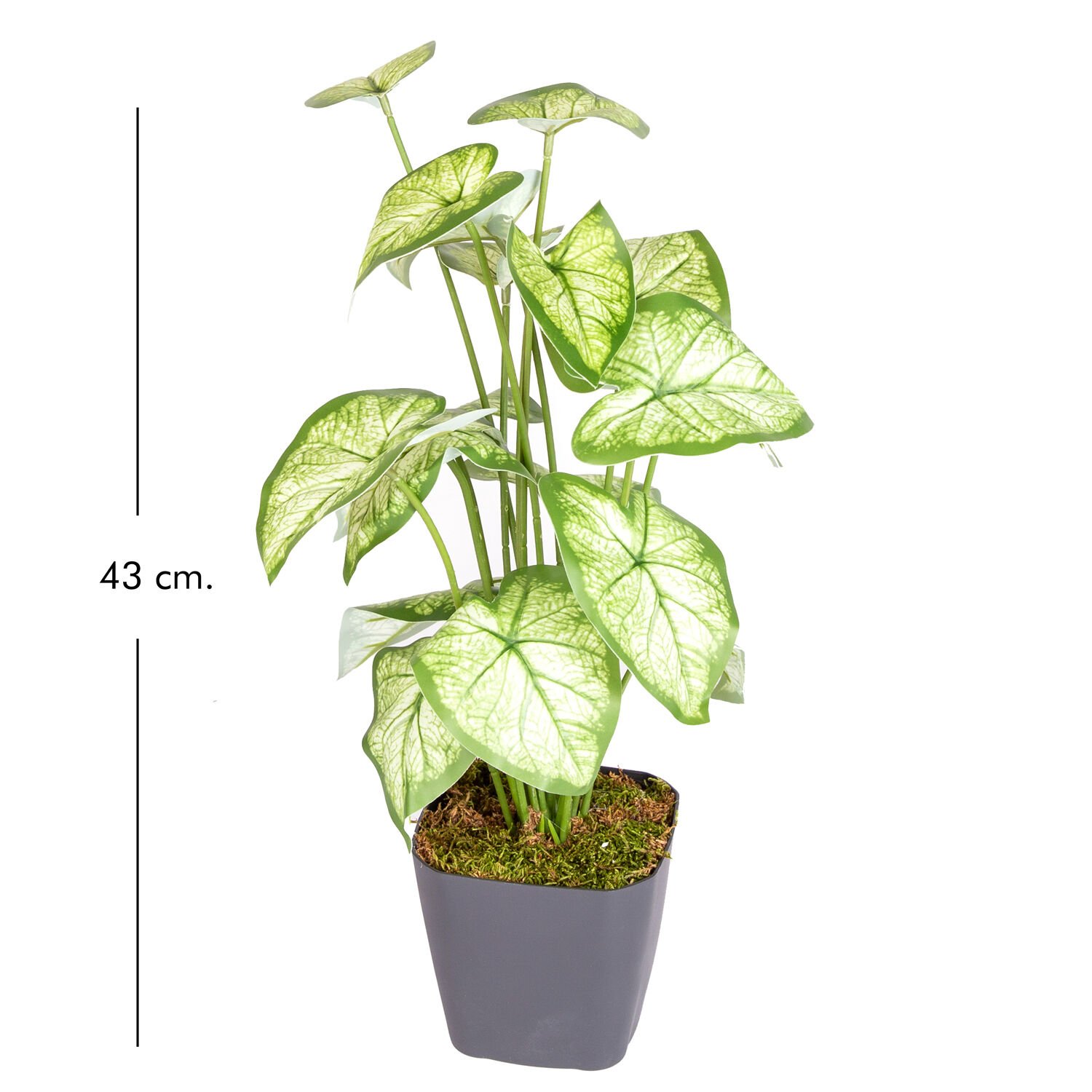 Saksıda Yapay Bitki Syngonium-Melek Kanadı Gerçek Dokulu 18 Yaprak Yeşil-Beyaz 43 Cm.