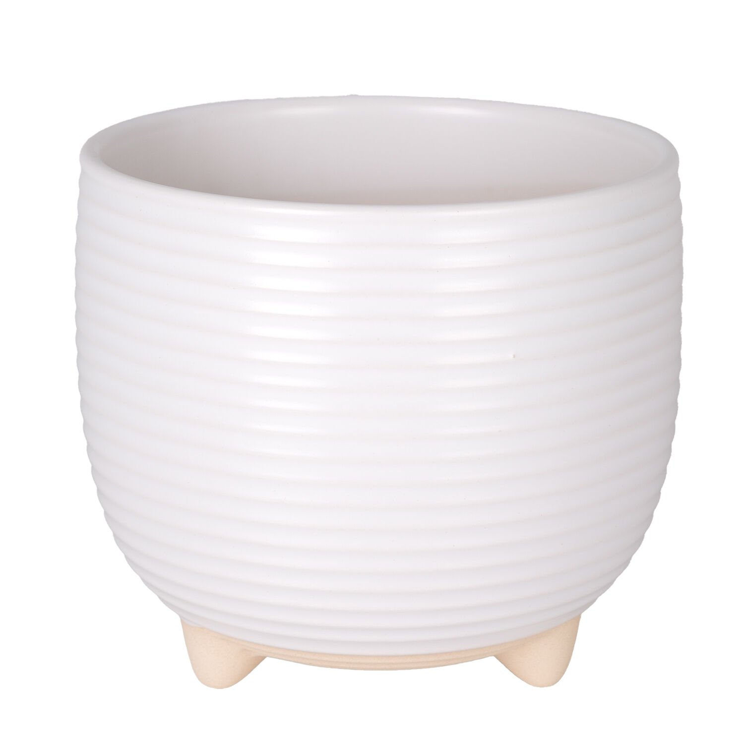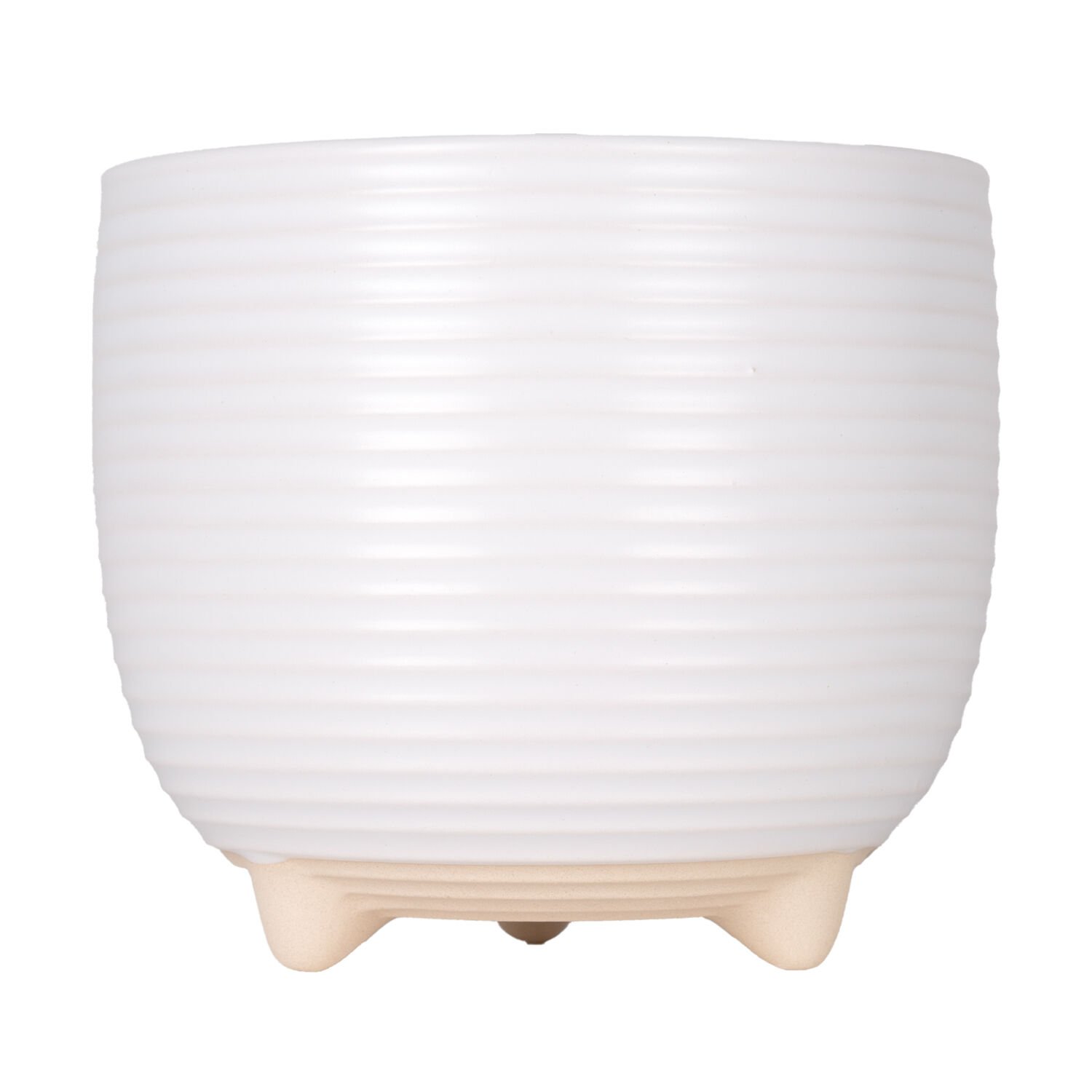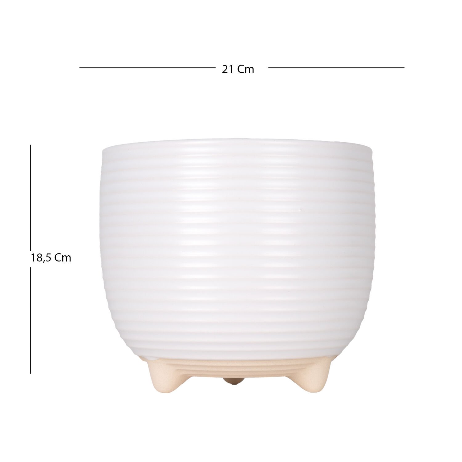 Seramik Saksı Ayaklı Yatay Kabartma Çizgili Beyaz 21x18,5 Cm.